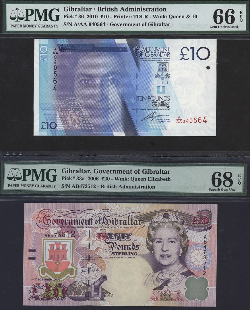 (x) Government of Gibraltar, [2 notes] £10, £20, 2006-2010,