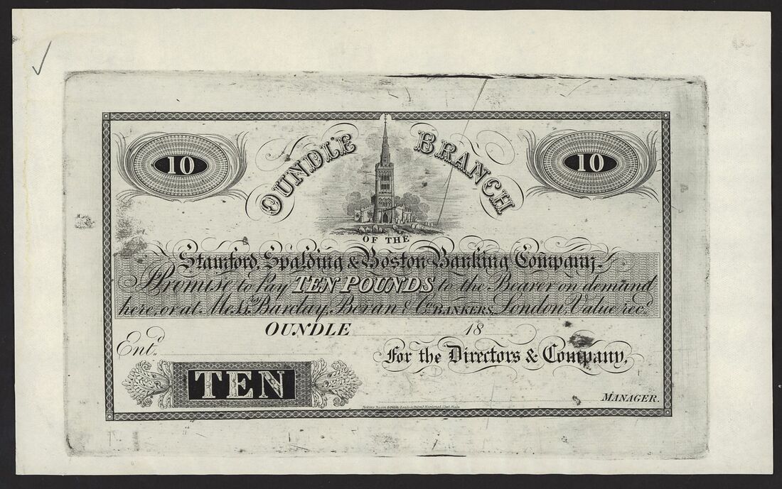 Stamford, Spalding & Boston Banking Company, obverse proof £10, Oundle, 18xx, (Outing 2036 for head office, Oundle issuing branch unlisted), very fine, stains, ink smudges, pencil mark, scarce