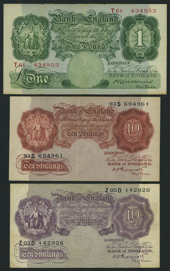 Bank of England, [14 notes] 10 Shillings, 1 Pound, ND (1930-1948), K.O. Peppiatt signatures and one B.G. Catterns signature, (EPM B225, B236, B238, B249, B251, B260), fine to very fine (14 notes)