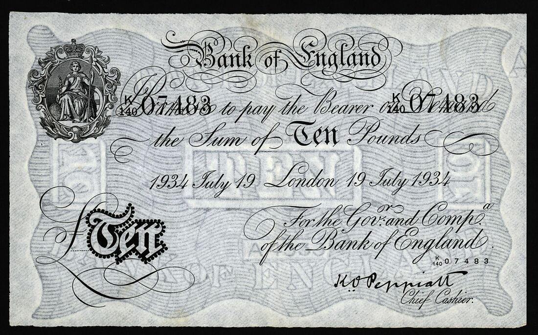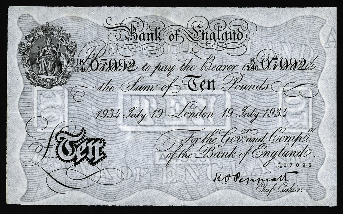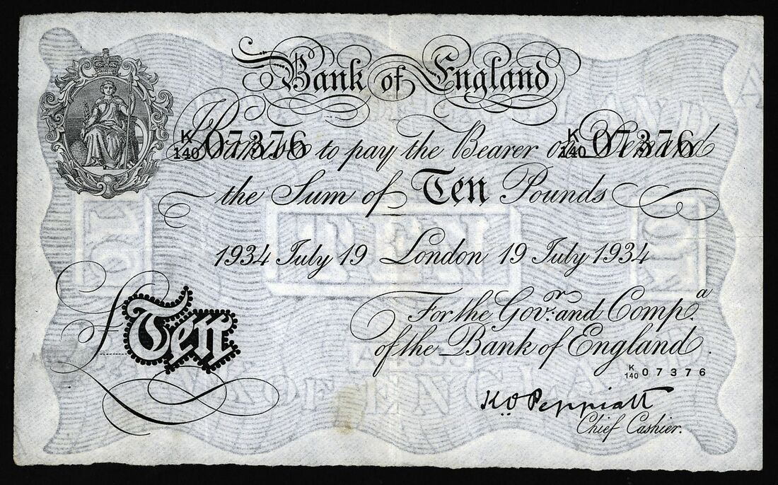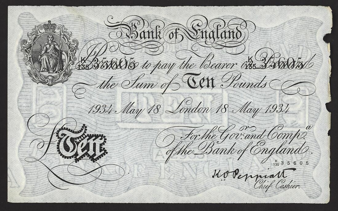 Bank of England, White Note, [4 notes] Operation Bernhard German forgery £10, London, K.O. Peppiatt signatures,