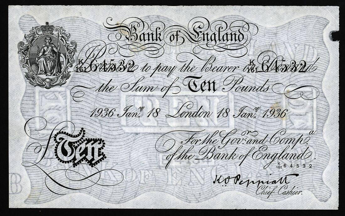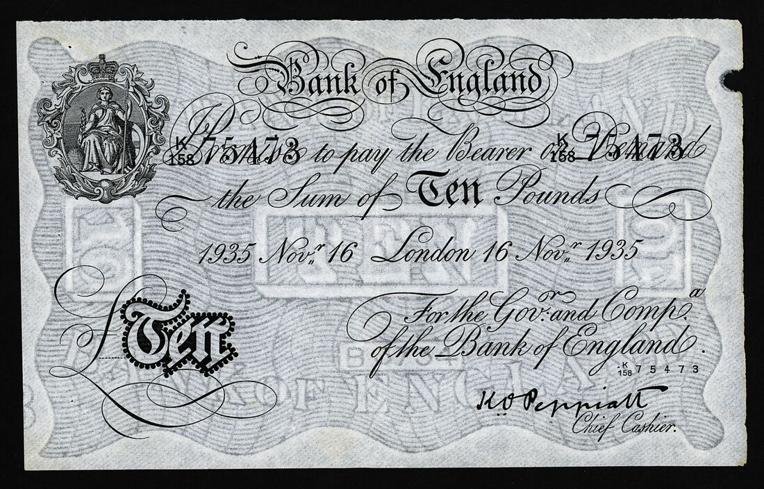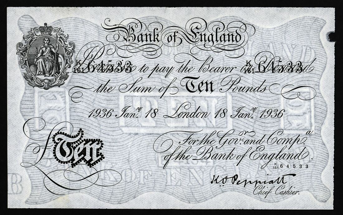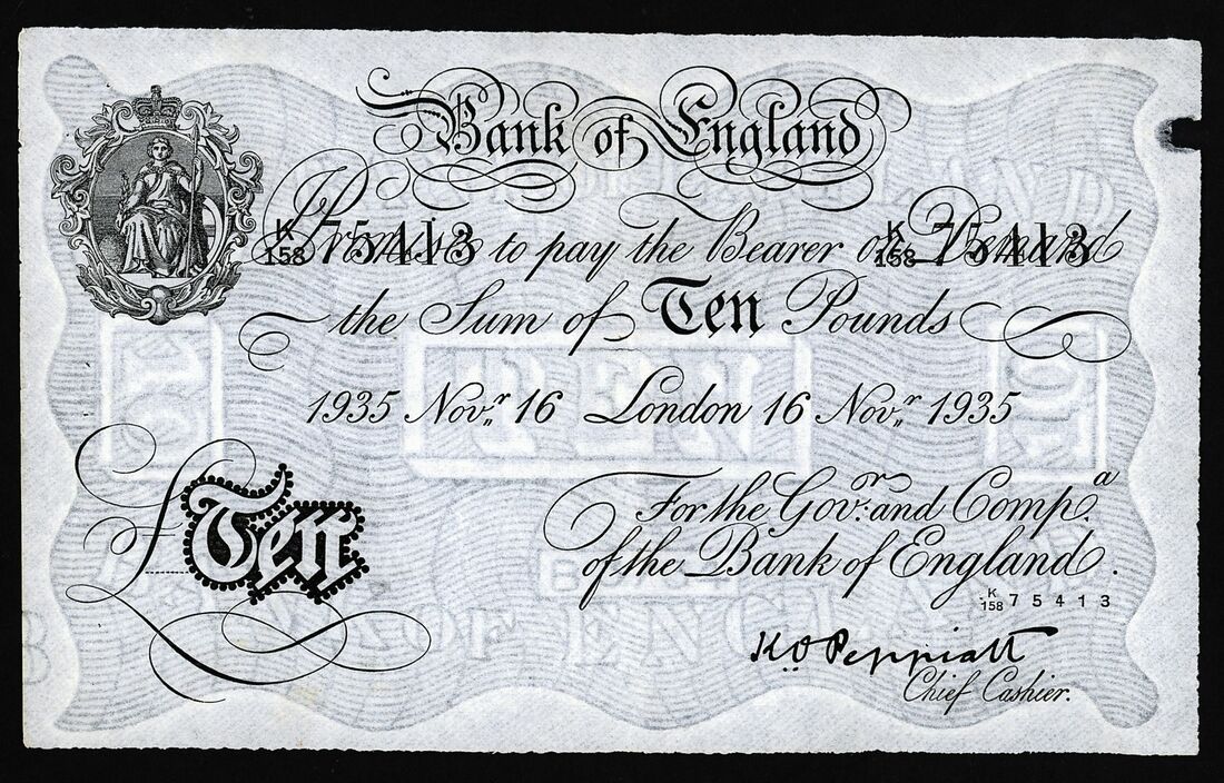 Bank of England, White Note, [4 notes] Operation Bernhard German forgery £10, London, K.O. Peppiatt signatures,