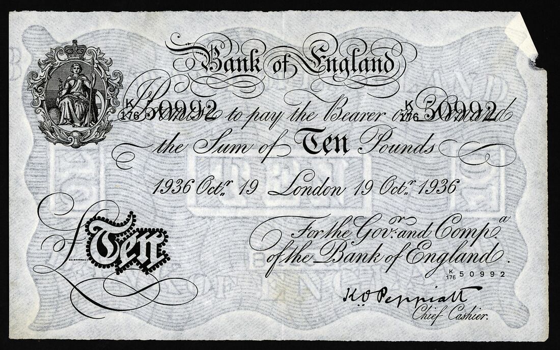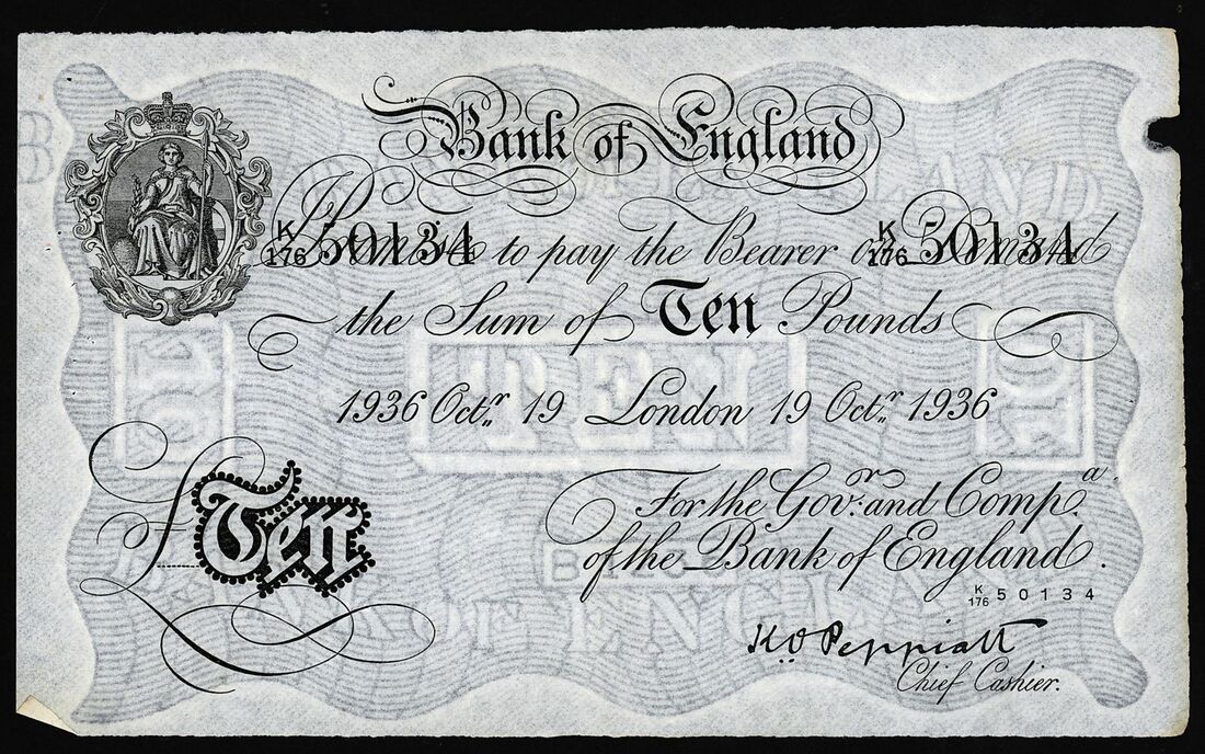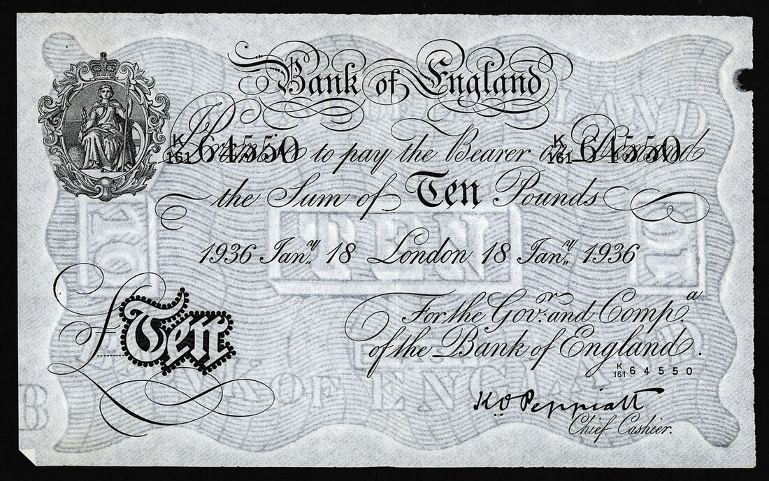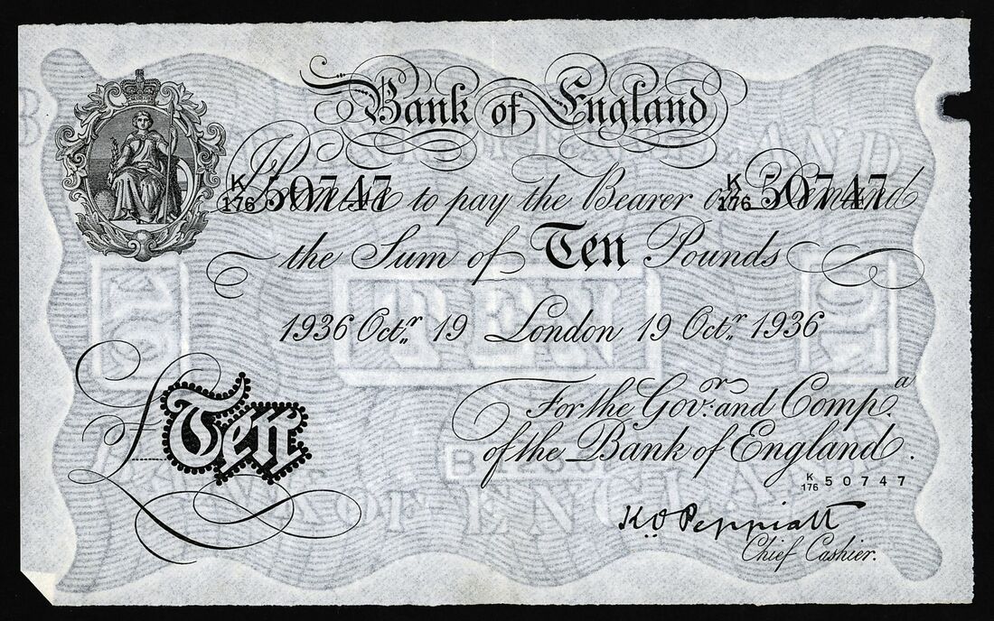Bank of England, White Note, [4 notes] Operation Bernhard German forgery £10, London, K.O. Peppiatt signatures,