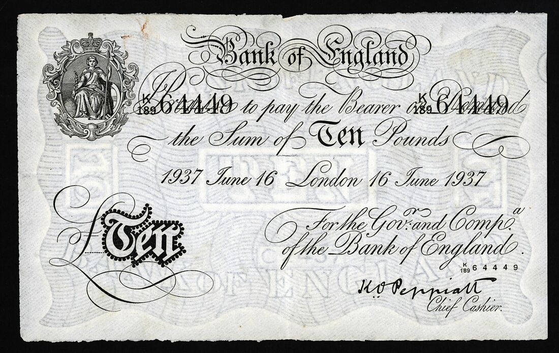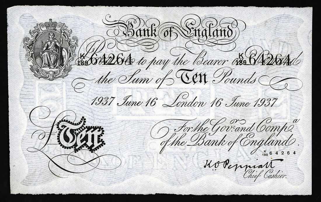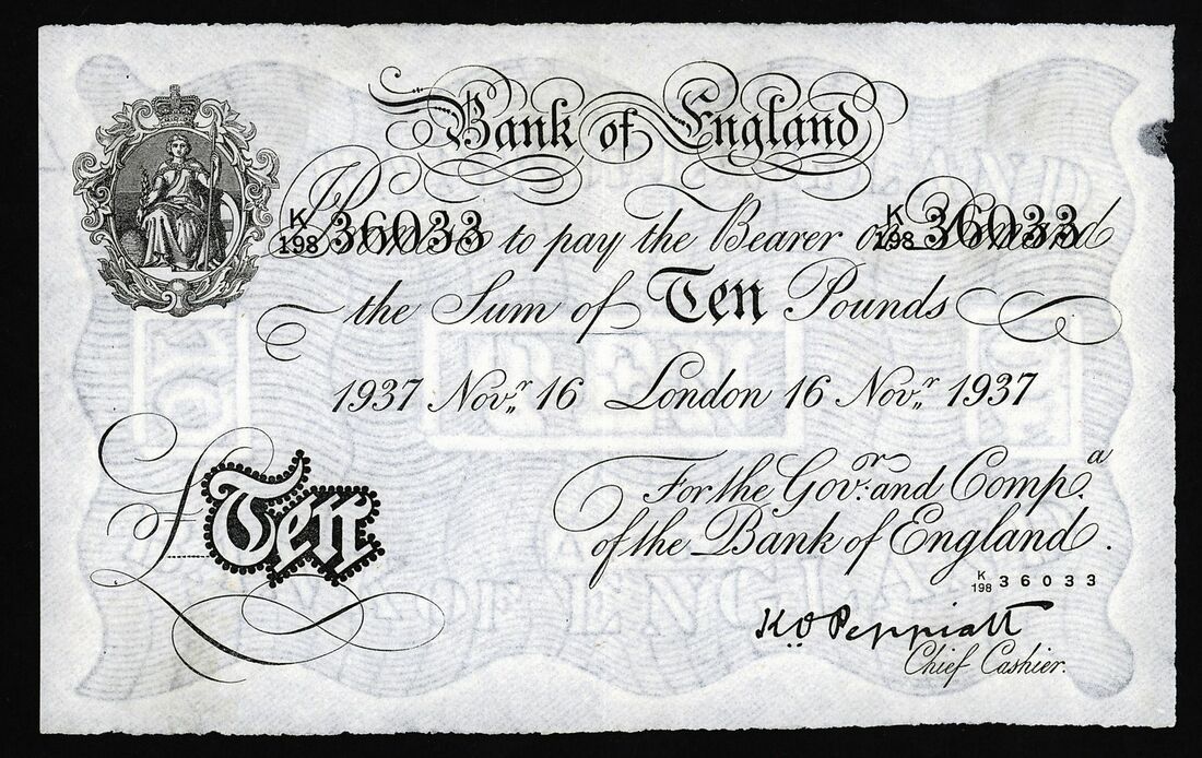 Bank of England, White Note, [4 notes] Operation Bernhard German forgery £10, London, K.O. Peppiatt signatures,