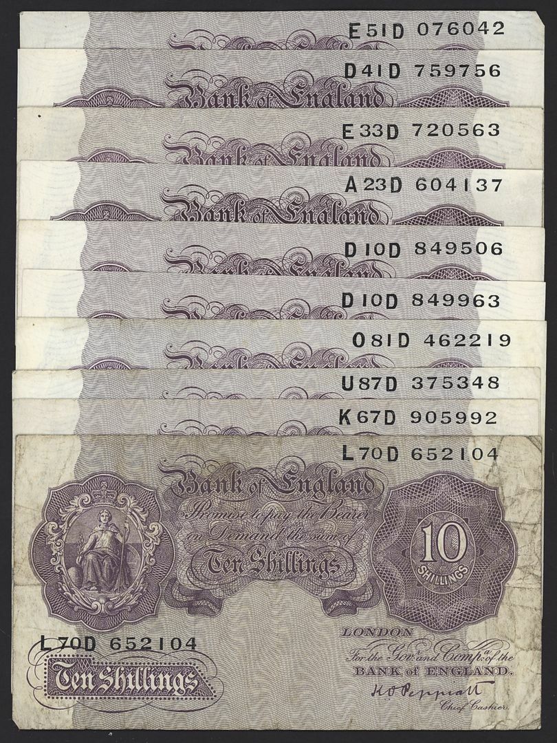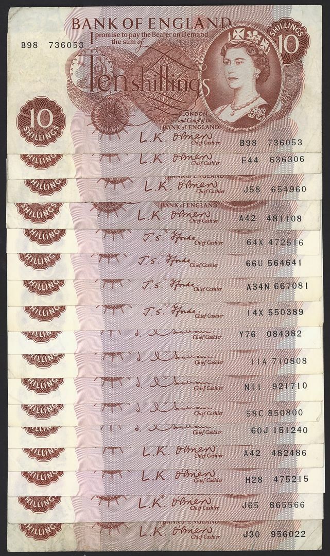 Bank of England, [30 notes] 10 Shillings, £1, 1940-67, various signatures, including one last series note (EPM B262), serial number 18E 113074