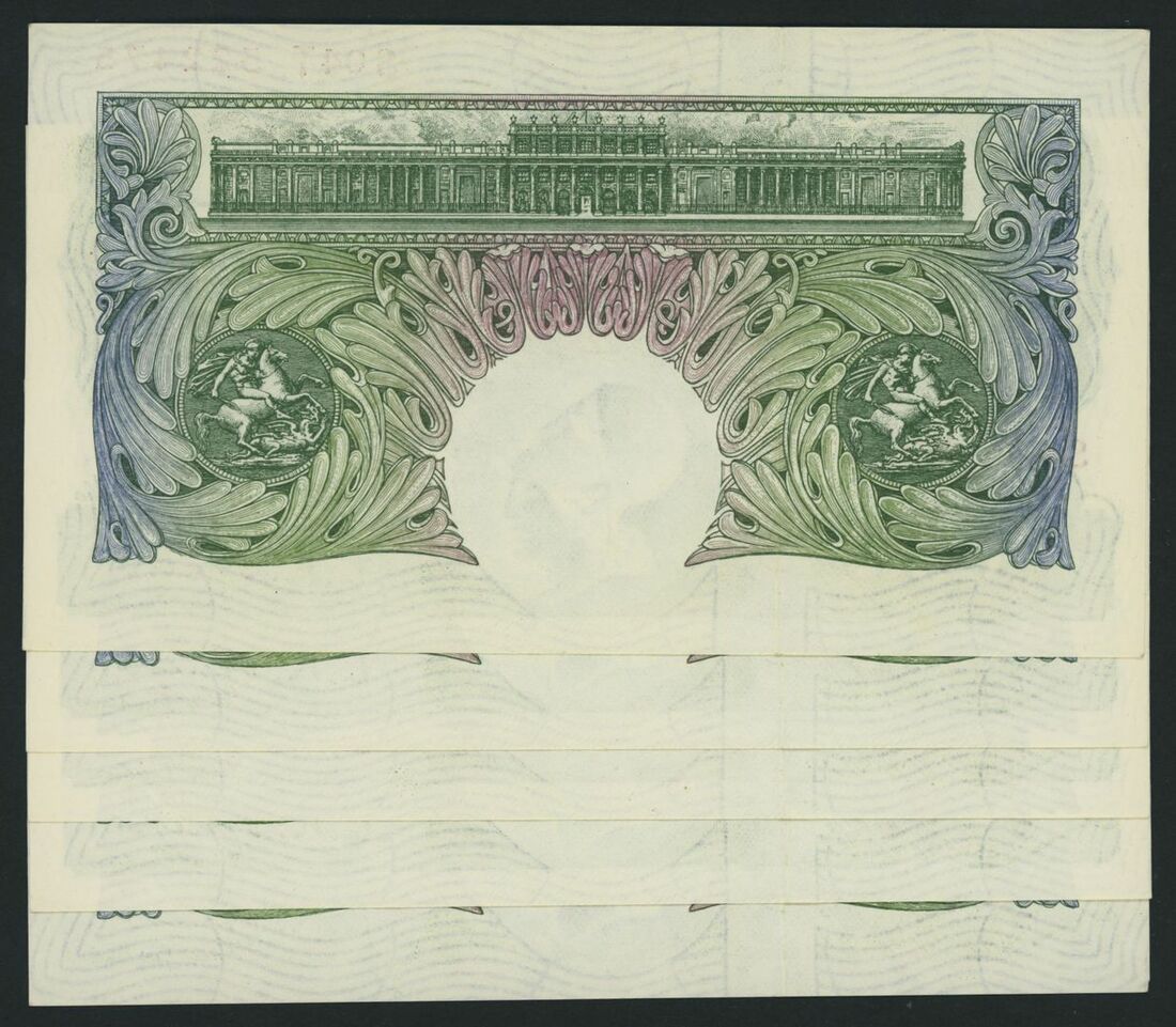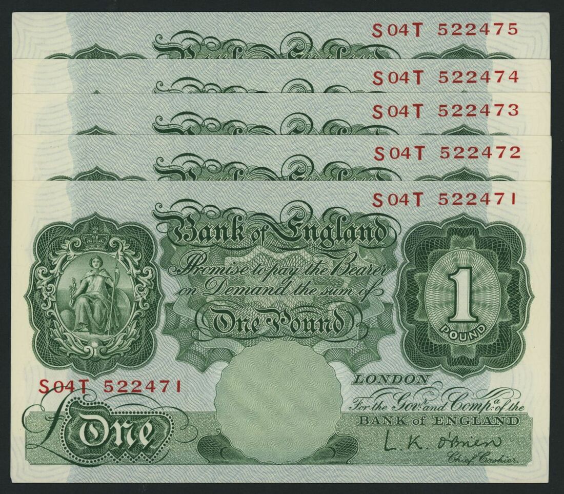 Bank of England, [5 notes] 1 Pound, ND (1955), L.K. O'Brien signature, replacement issue, consecutive serial numbers S04T 22471-5