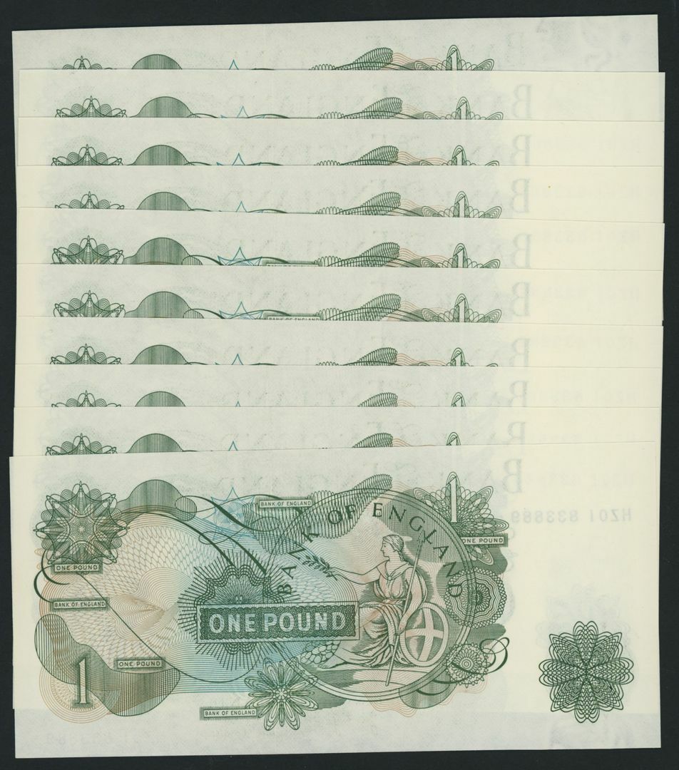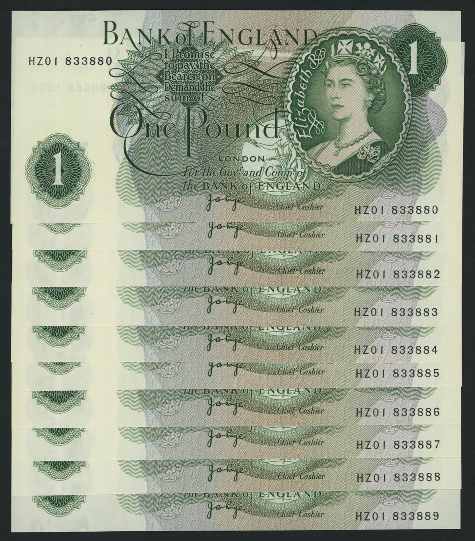 [LAST SERIES] £1, ND (1970), consecutive serial numbers HZ01 833880-9;