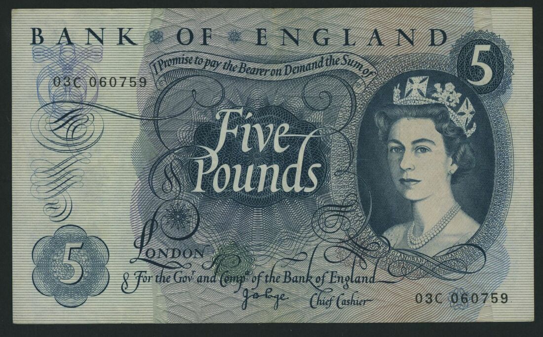[FIRST RUN] £5, ND (1971), serial number 03C 060759