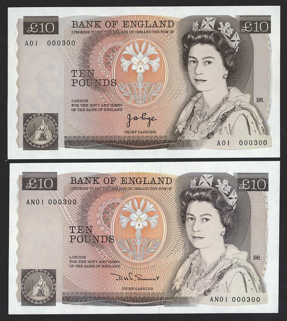 Bank of England, [2 notes] [FIRST RUN] £10, 1975-84,