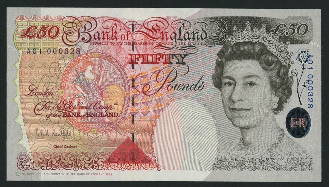 (x) Bank of England, £50, ND (1994), serial number A01 000328, Kentfield signature, (EPM B377), about uncirculated