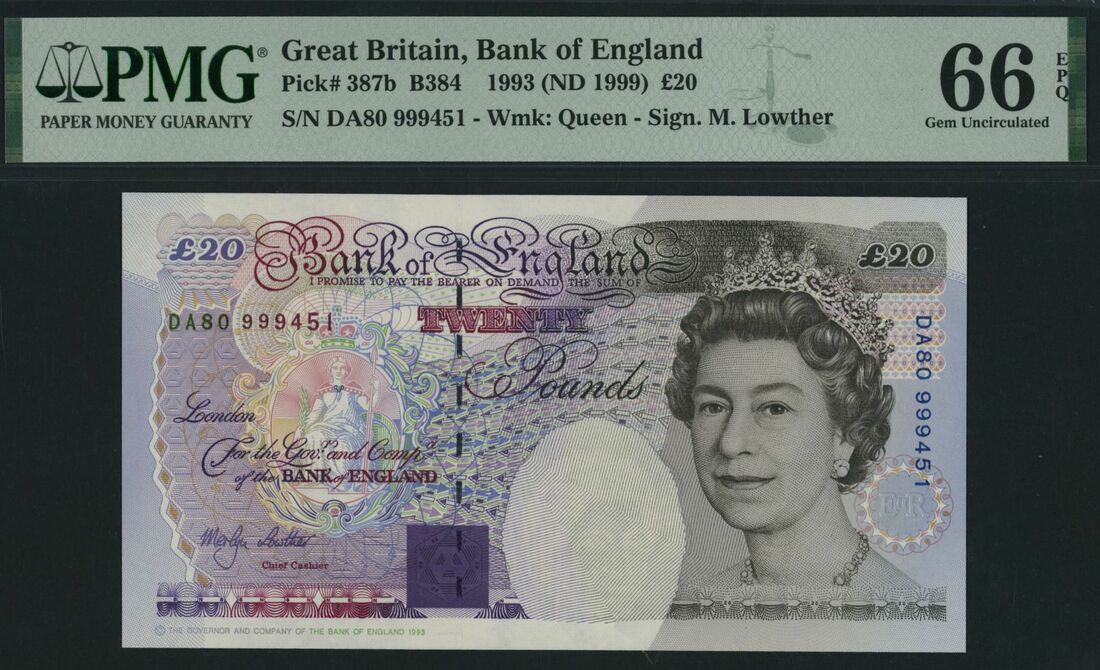 £20, 1999 (ND 1999-2003), serial number AA01 999451,