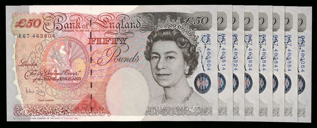 Bank of England, [8 notes] £100, ND (2006), A. Bailey signature, serial numbers R67 463804, R67 463814, R67 463824, R67 463834, R67 463844, R67 463847, R67 463854, R68 463054