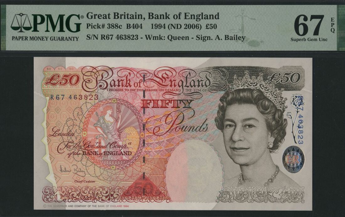 Bank of England, £50, 1994 (ND 2006), serial number R67 463823, A. Bailey signature, (Pick 388c, EPM B404), in PMG holder 67 EPQ Superb Gem Uncirculated