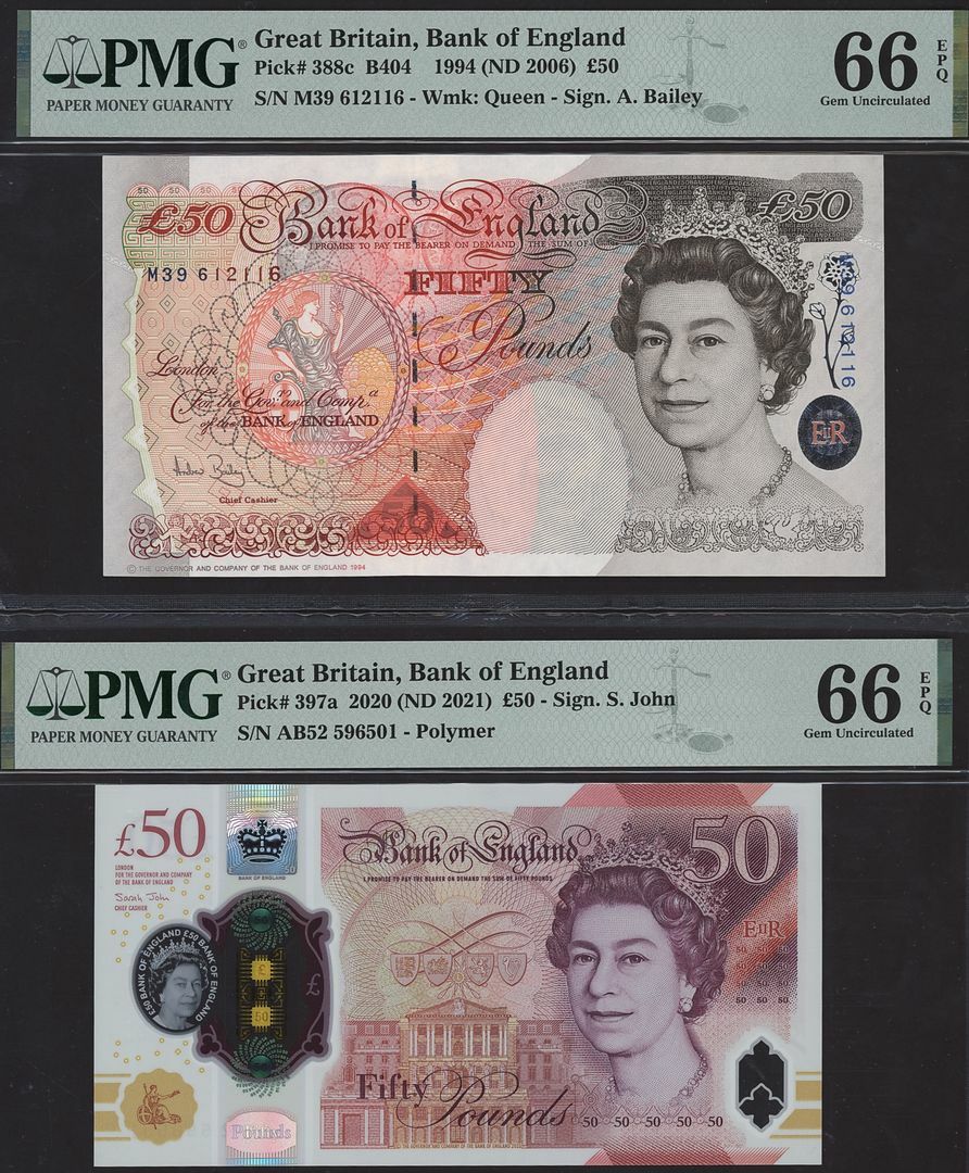 (x) Bank of England, [2 notes] £50, 2006-2021, Bailey and John signatures,