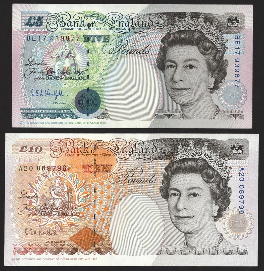 £5, Kentfield, serial number BE17 939877,