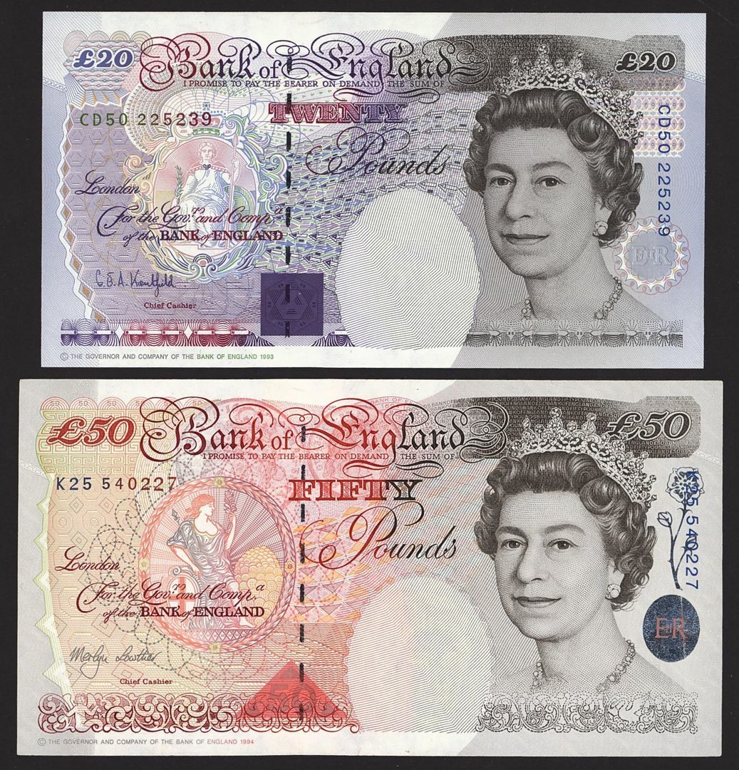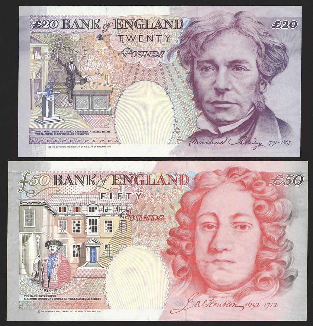 Bank of England, [6 notes] £5, £10, £20, £50, 1975-99,