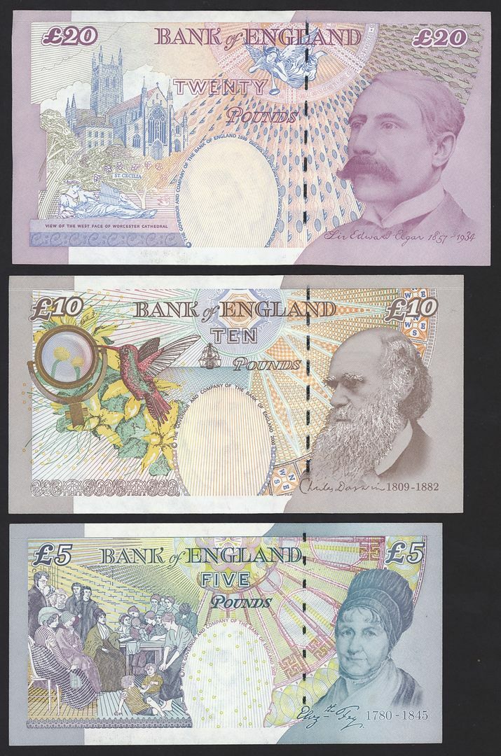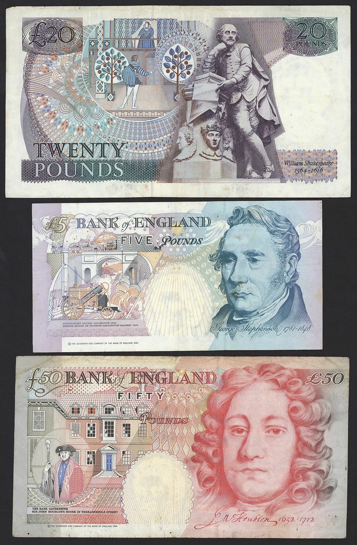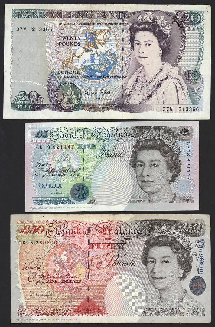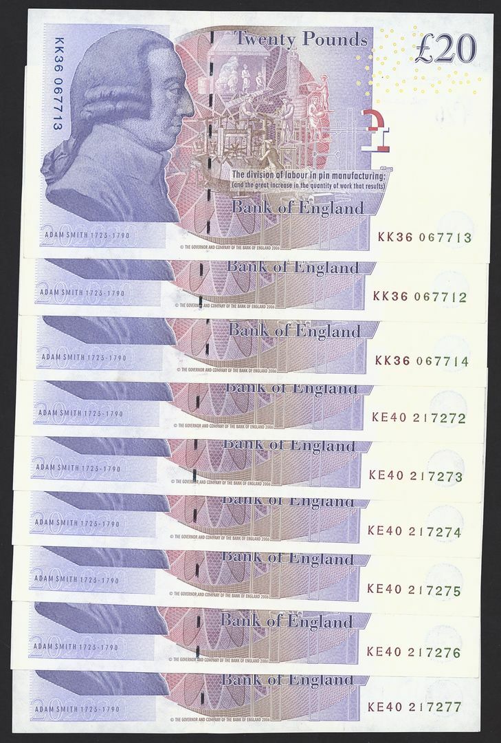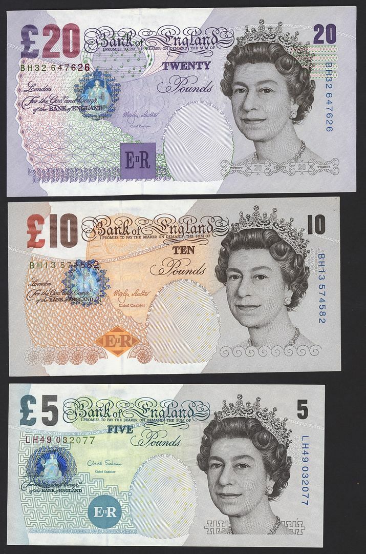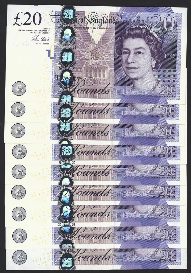 £5, £10, £20, Cleland signature, including two runs of consecutive serial numbers