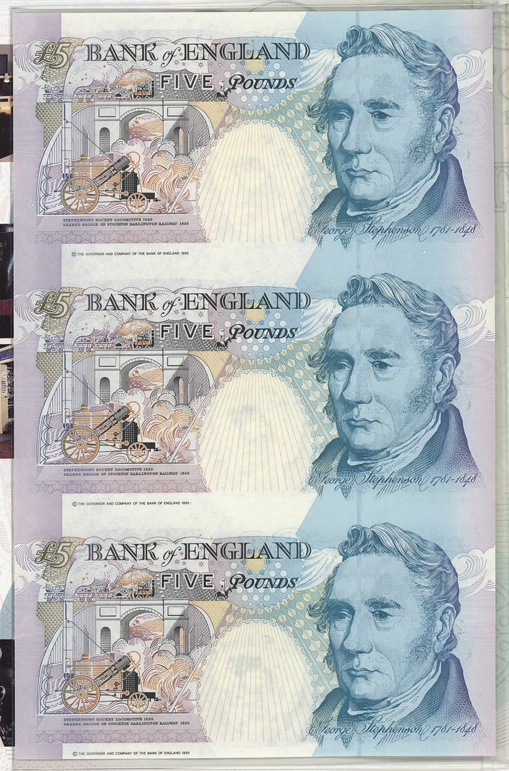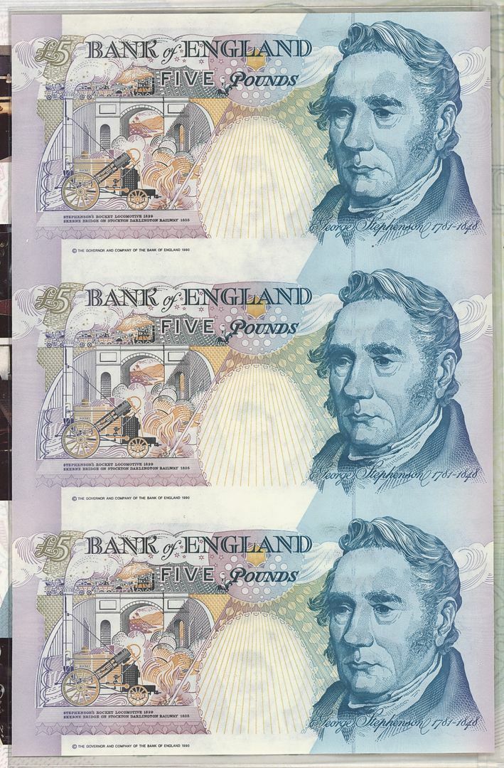 (x) Bank of England, [2 booklets] uncut sheet of 3 £5, 1990 (1993), Kentfield signature,