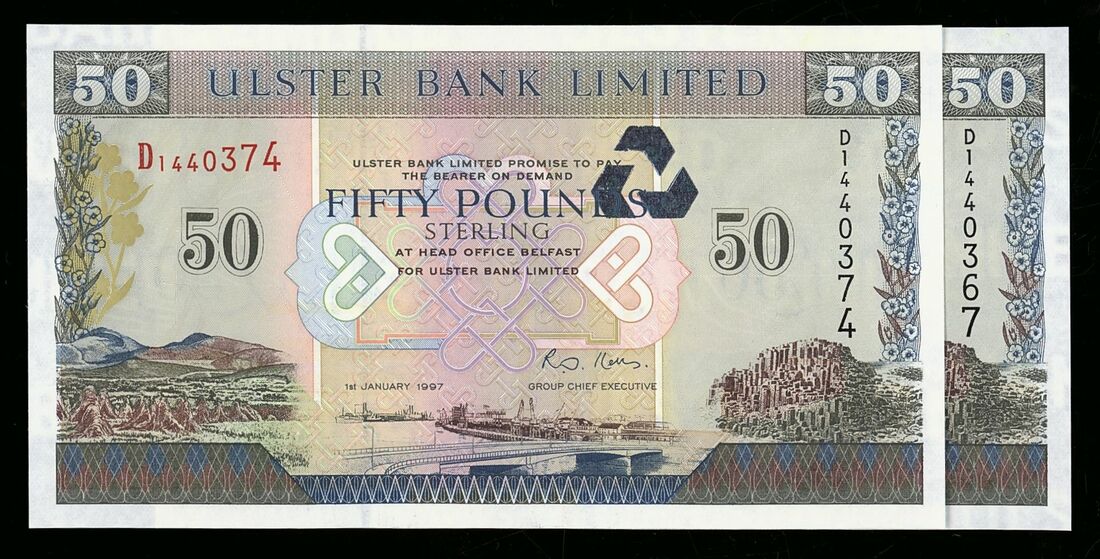 Ulster Bank Limited, [2 notes] £50, Belfast, 1st January 1997, serial numbers D1440374 and D1440367, (PMI UB 94), uncirculated (2 notes)