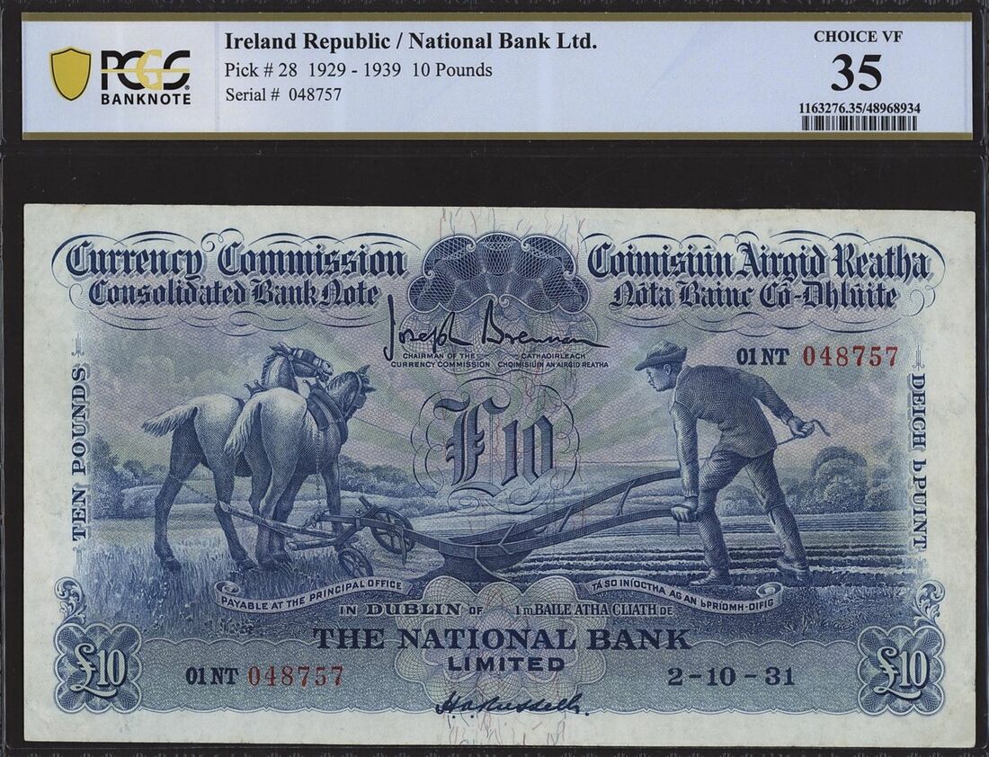 (x) National Bank, Ireland, [Top Pop] £10, 2nd October 1931, serial number 01NT048757, (Pick 28, BNB 110N), in PCGS holder 35 Choice Fine, rare, especially in this incredible grade
