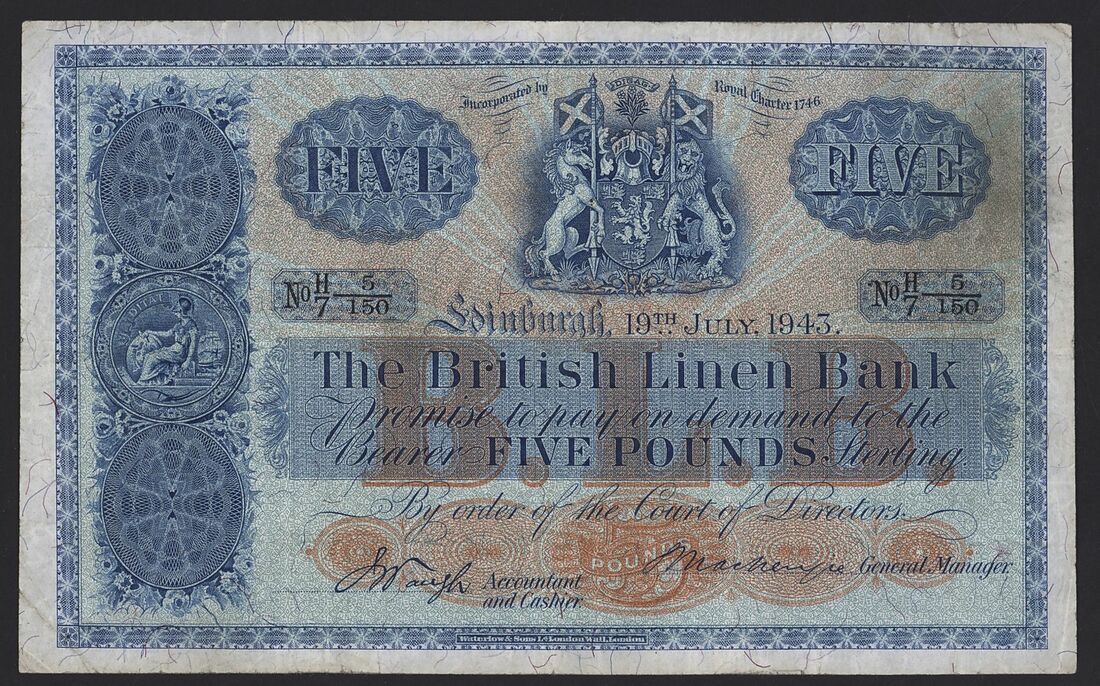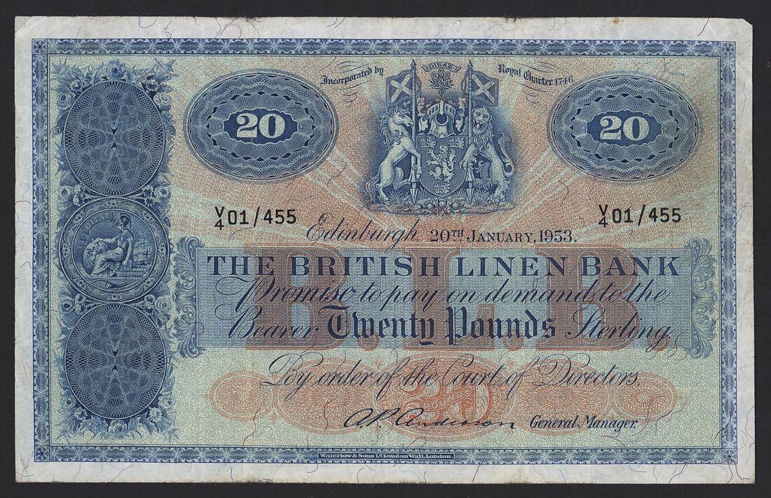 British Linen Bank, Scotland, [3 notes] £5, £20, Edinburgh, 1943-53,