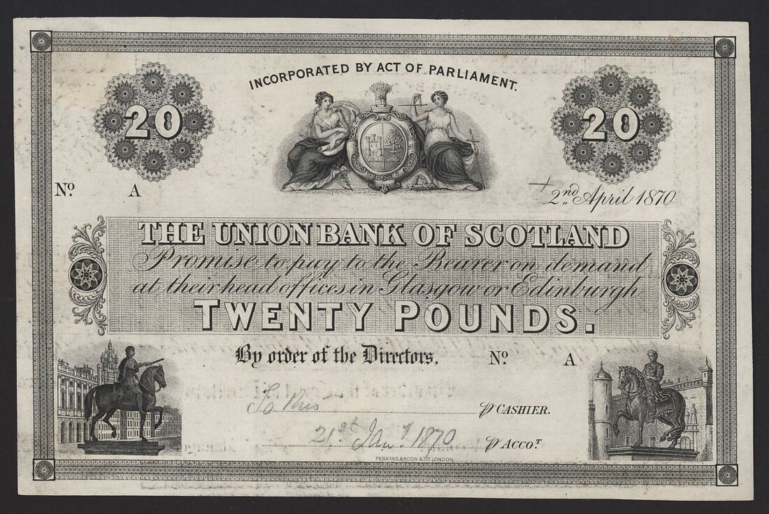 (x) Union Bank of Scotland, proof £20, 21st January 1870, series A, without green denomination across middle of obverse