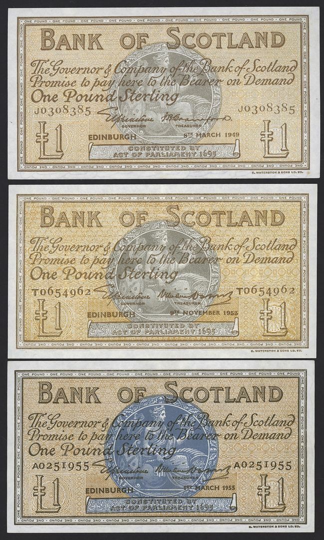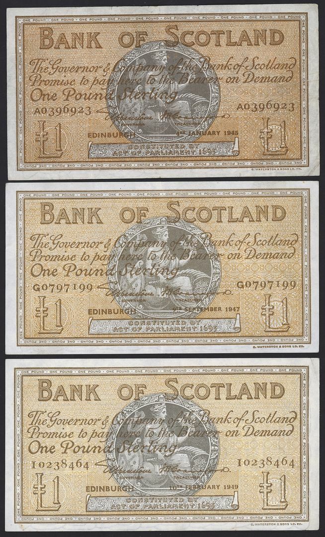 Bank of Scotland, [9 notes] £1, £5, Edinburgh, 1945-58,