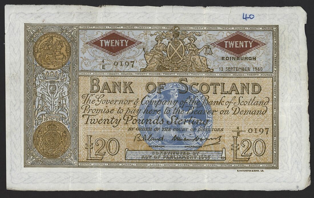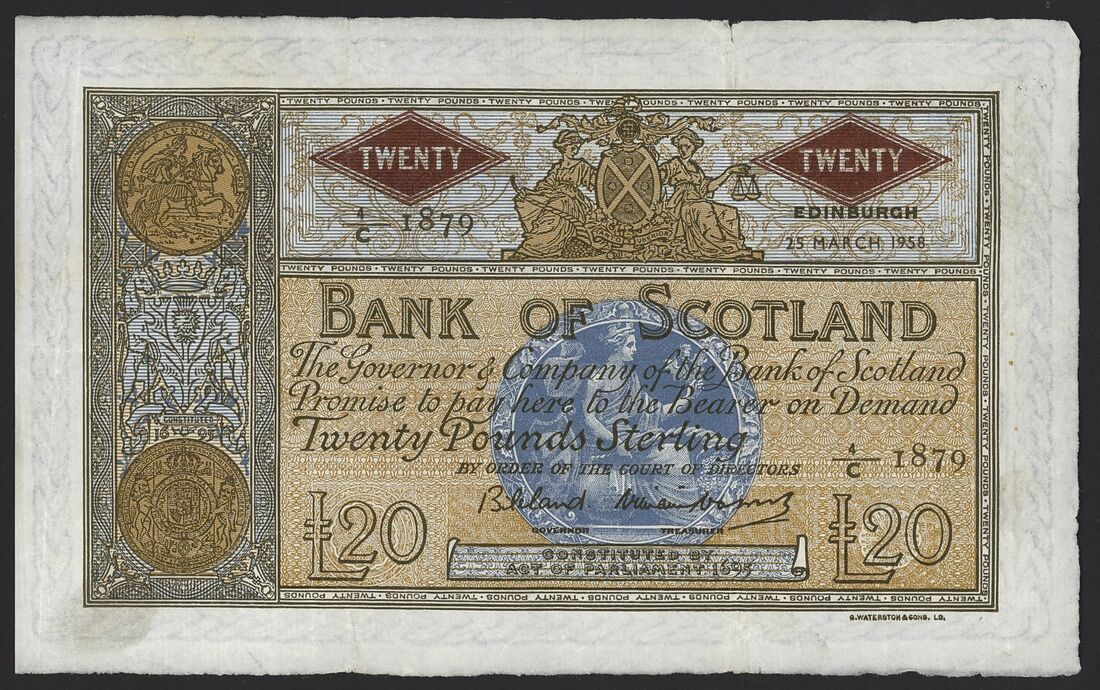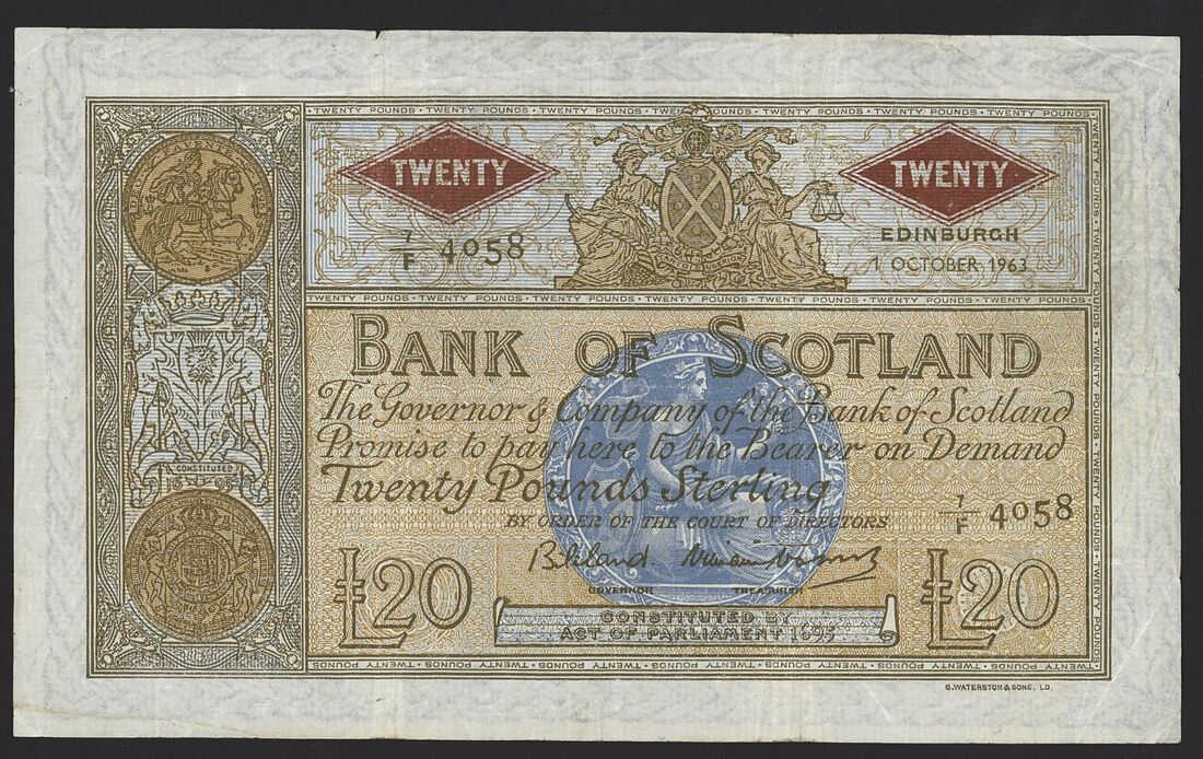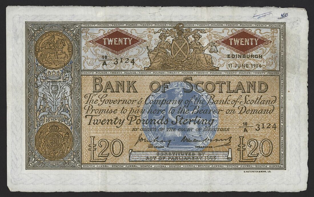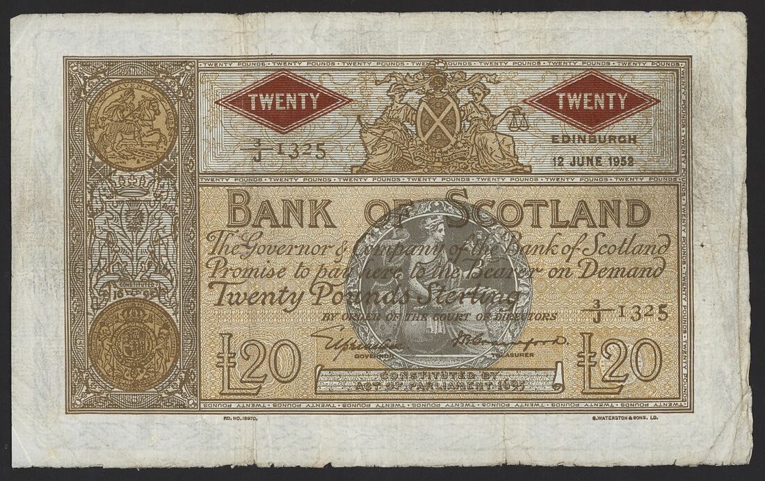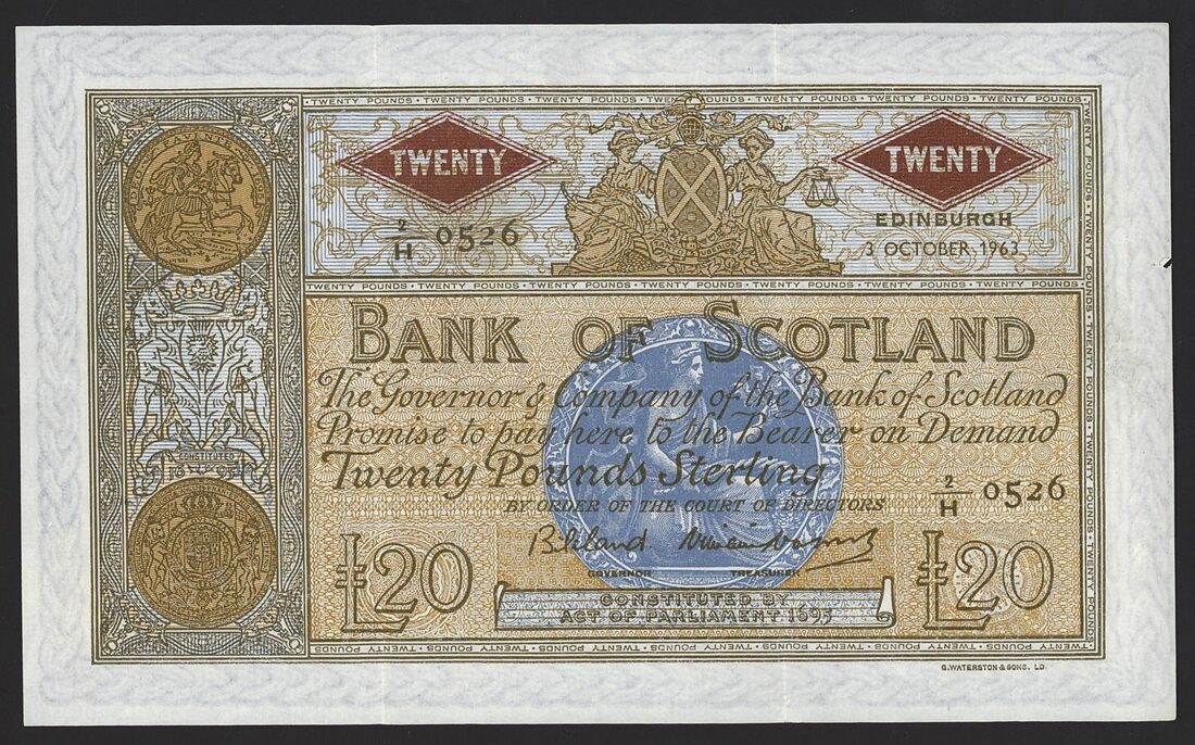 Bank of Scotland, [6 notes] £20, Edinburgh, 1952-1963, serial numbers 3/J 1325, 10/A 3124, 4/C 1879, 4/E 0197, 7/F 4058 and 2/H 0526