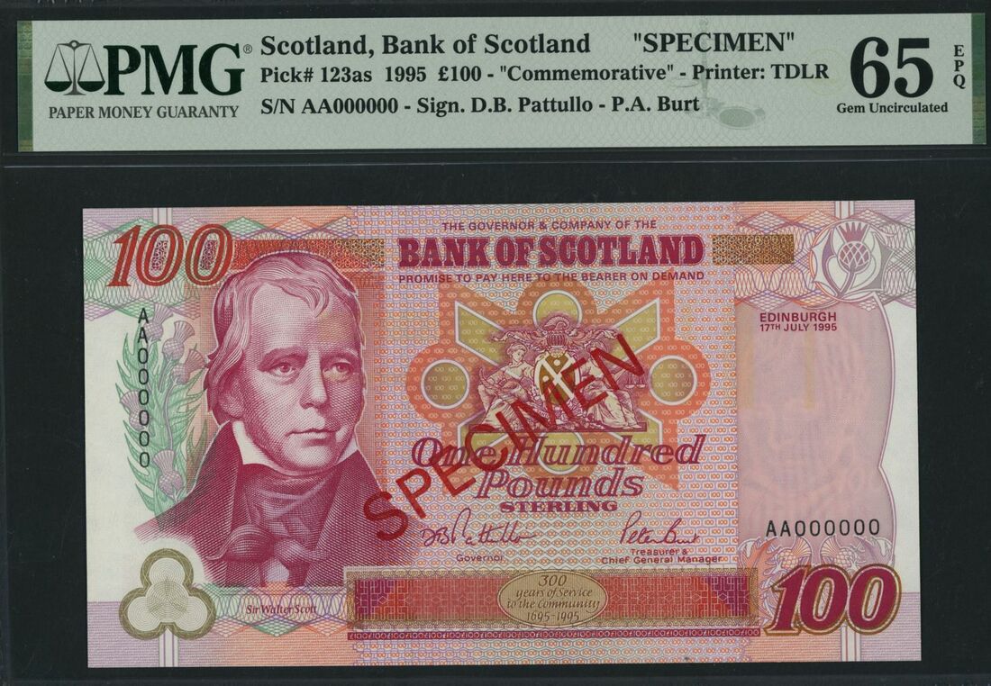(x) Bank of Scotland, specimen £100, 17th July 1995, serial number AA000000, commemorative of the tercentenary of the bank´s founding
