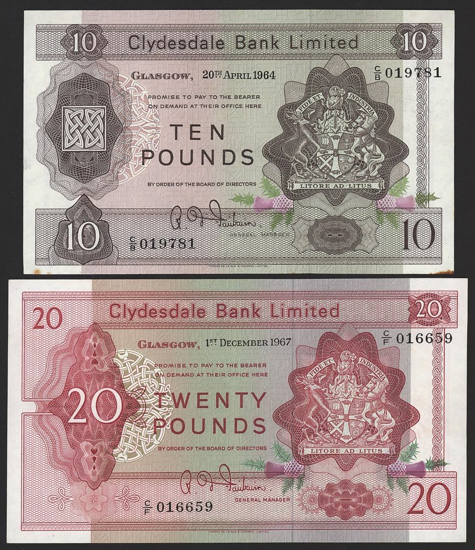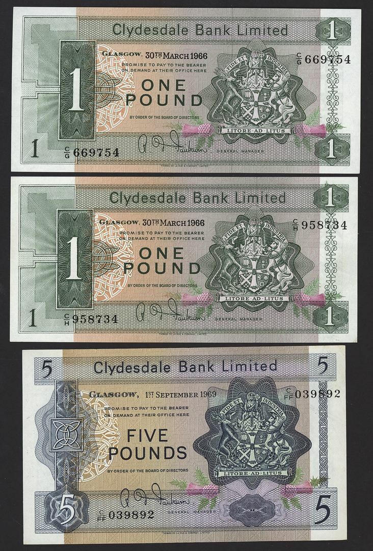Clydesdale Bank Limited, Scotland, [5 notes] £1, £5, £10, £20, Glasgow, 1964-69,