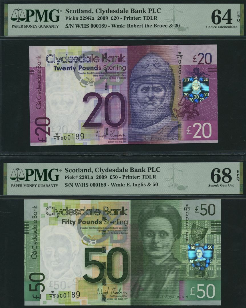 (x) Clydesdale Bank, Scotland, set of 4 banknotes with matching serial number,