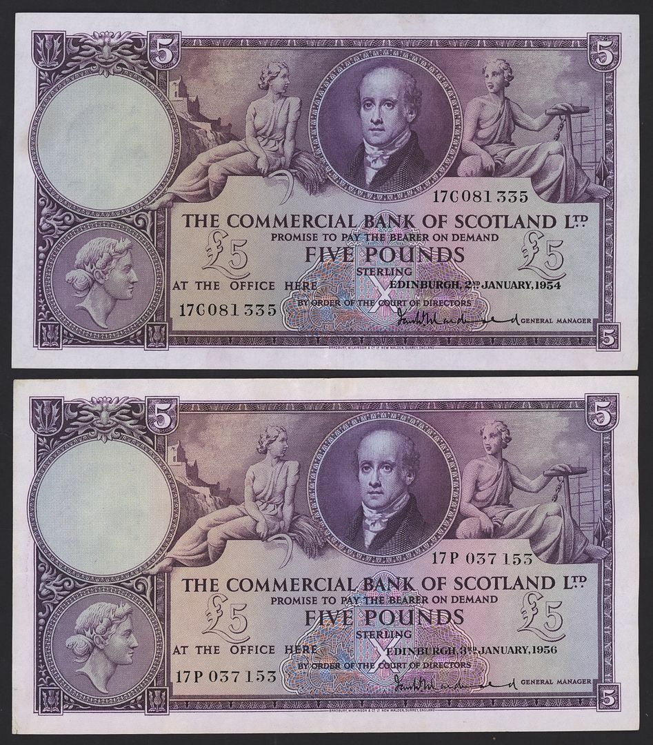 Commercial Bank of Scotland, [10 notes] £1, £5, Edinburgh, 1940-58,
