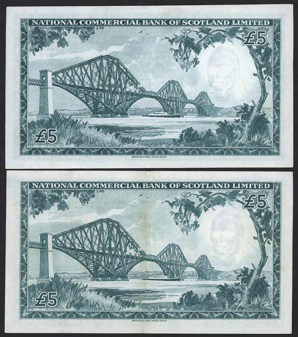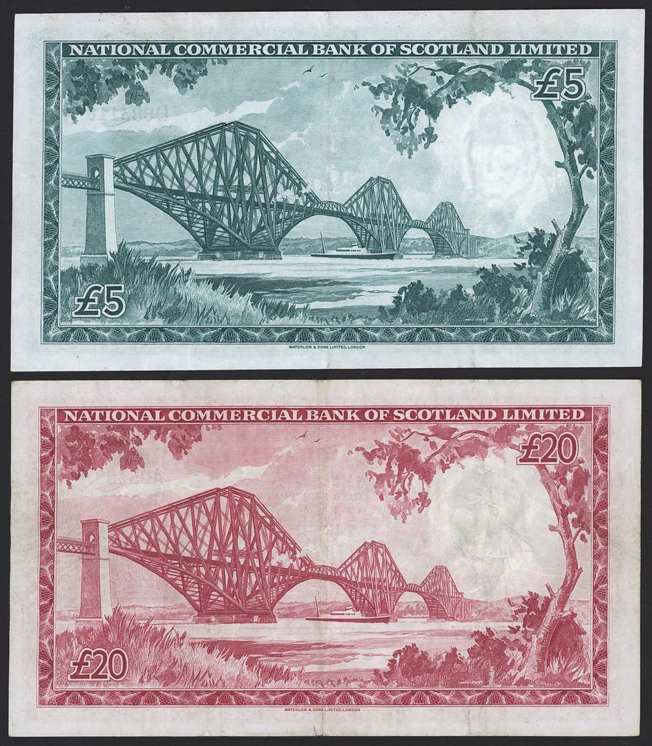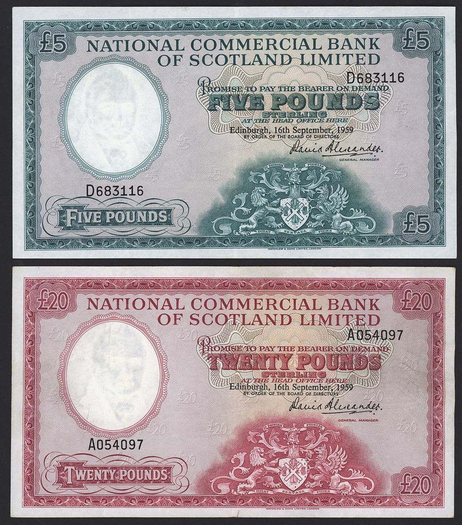 National Bank, National Commercial Bank, Scotland, [6 notes] £5, £20, Edinburgh, 1957-9,
