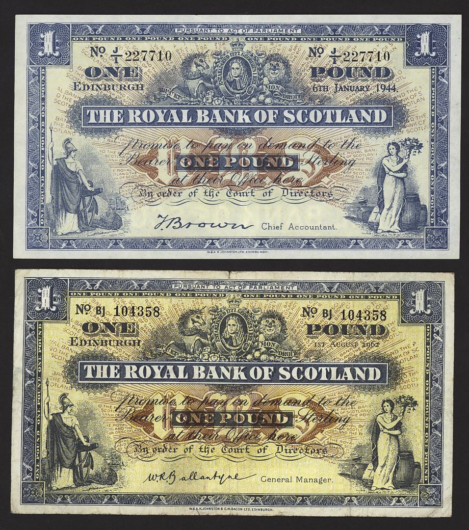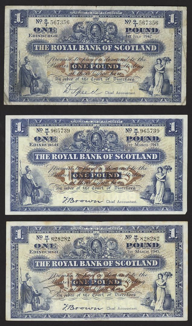 Royal Bank of Scotland, [5 notes] £1, Edinburgh, 1942-1962, serial numbers G/1 567356, H/1 965739, H/1 82882, J/1 227710 and BJ 104358