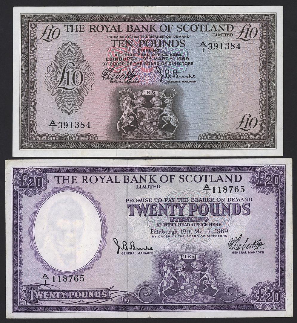 Royal Bank of Scotland, [7 notes] £1, £5, £10, £20, 1967-9,