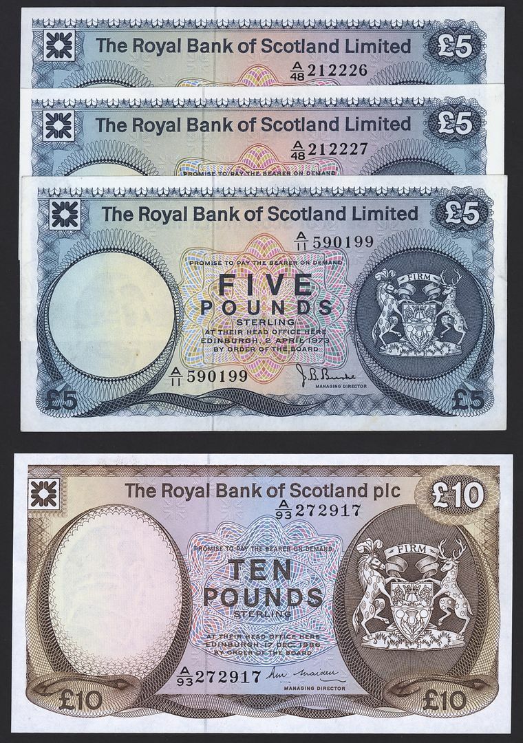 Royal Bank of Scotland, [4 notes] £5, £10, 1973-86,