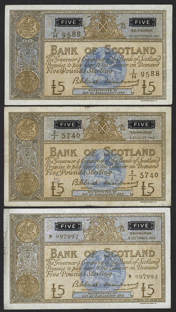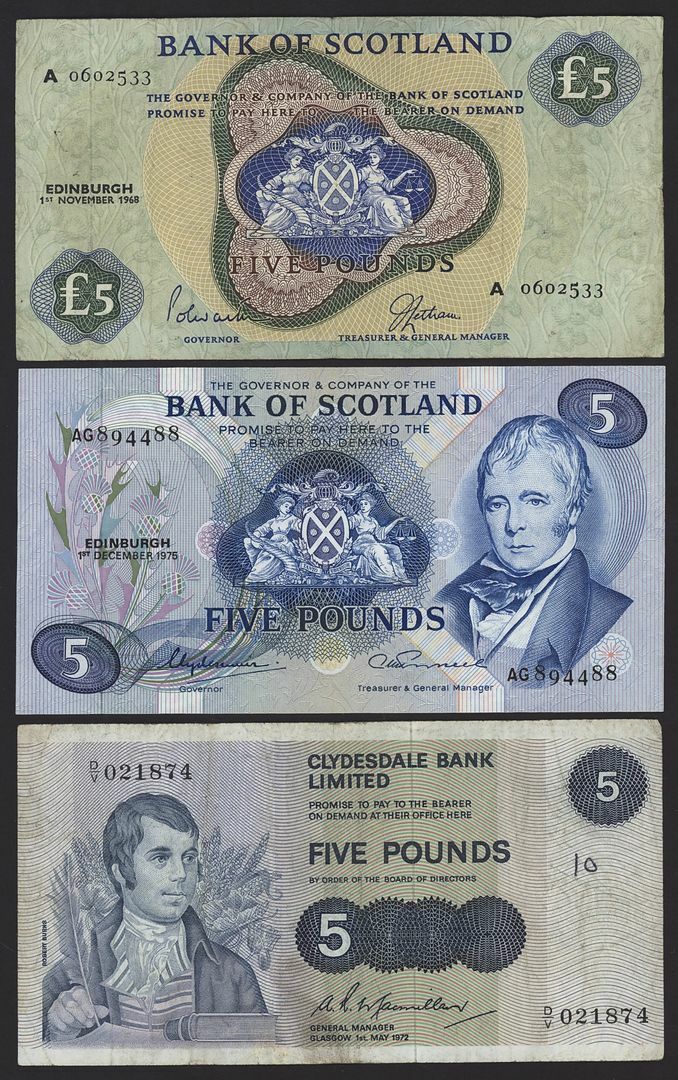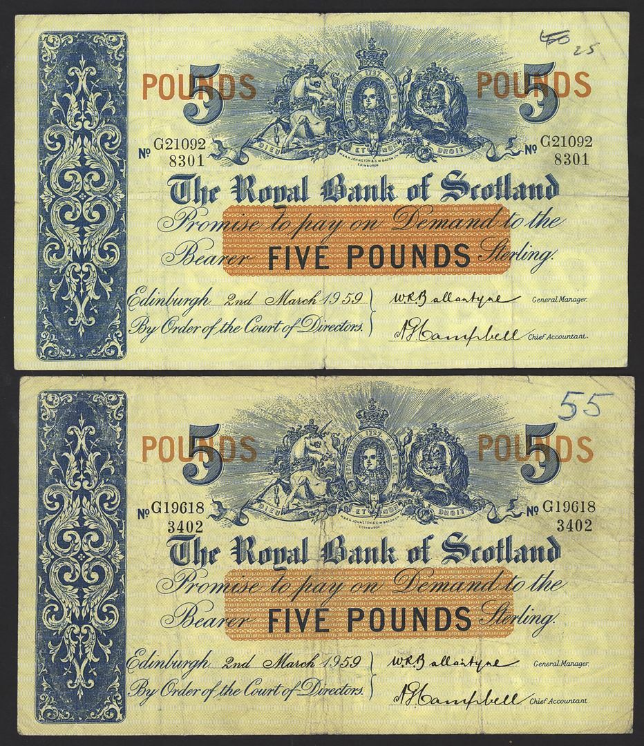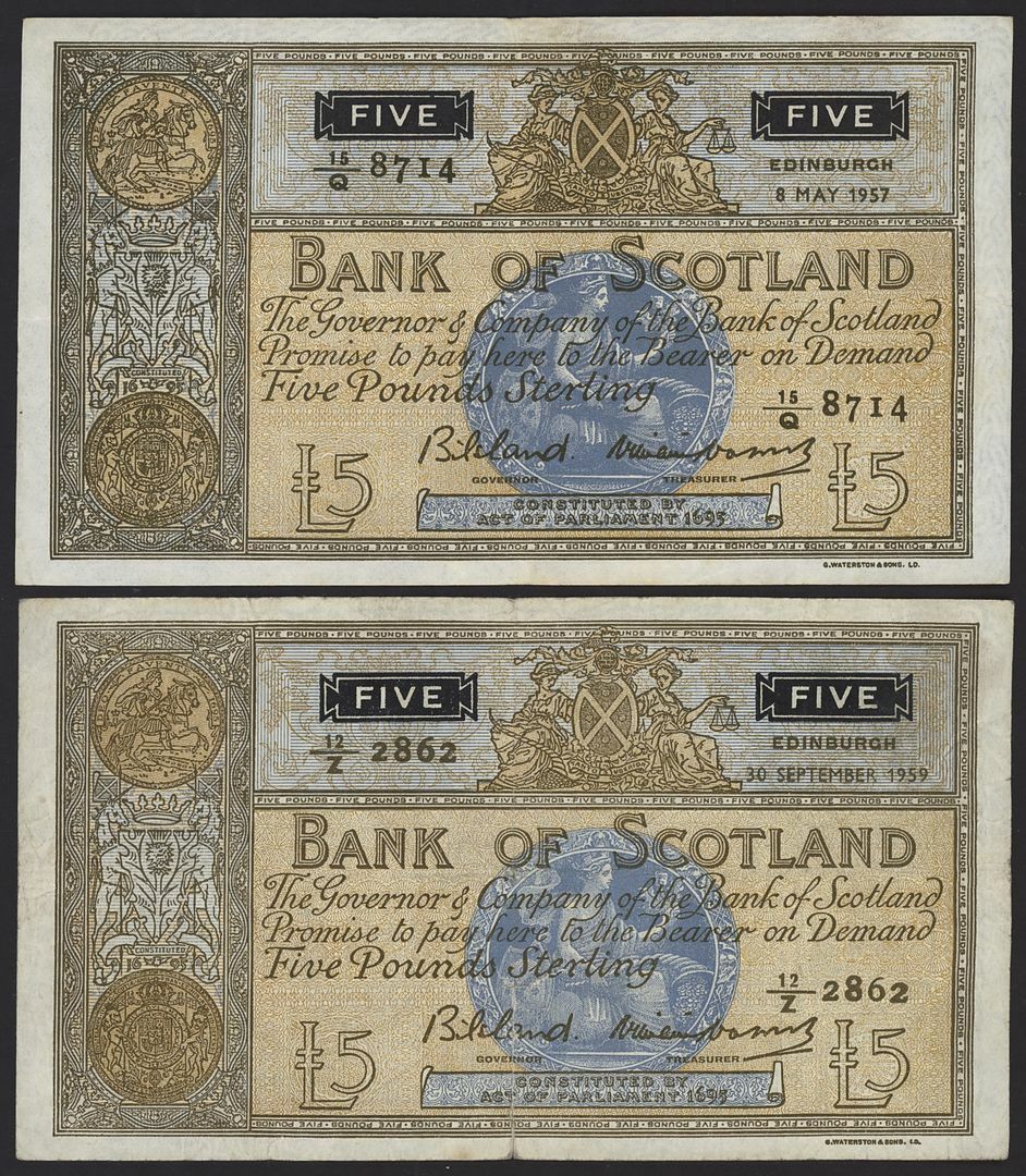 Bank of Scotland, Clydesdale Bank, Royal Bank of Scotland, [18 notes] £5, 1943-1975,
