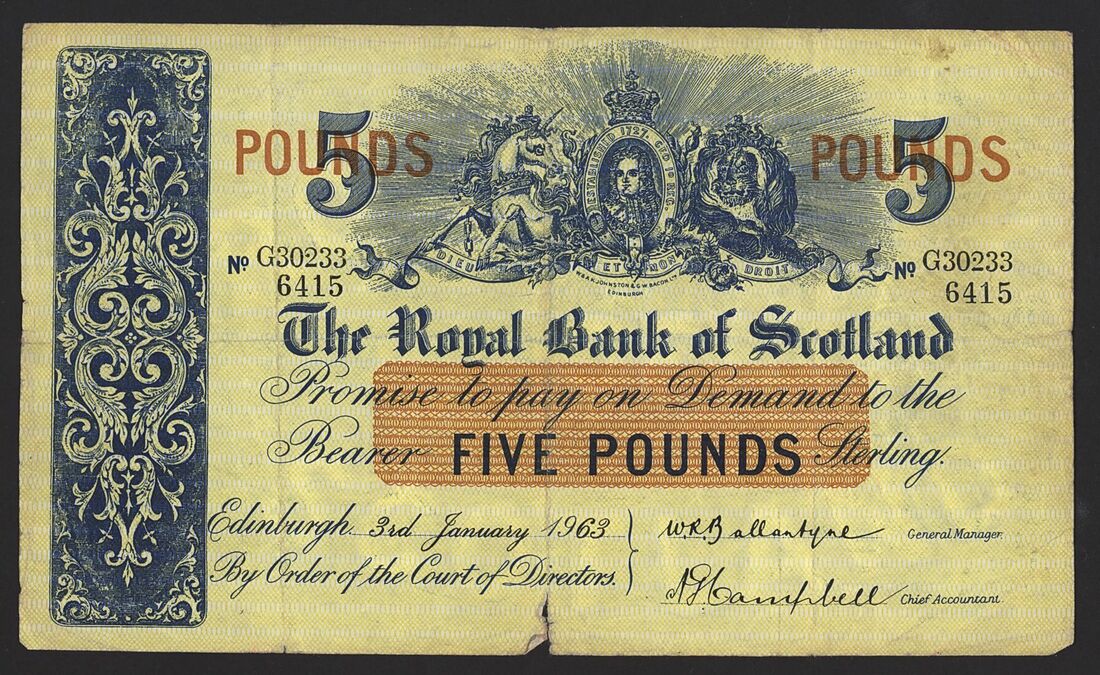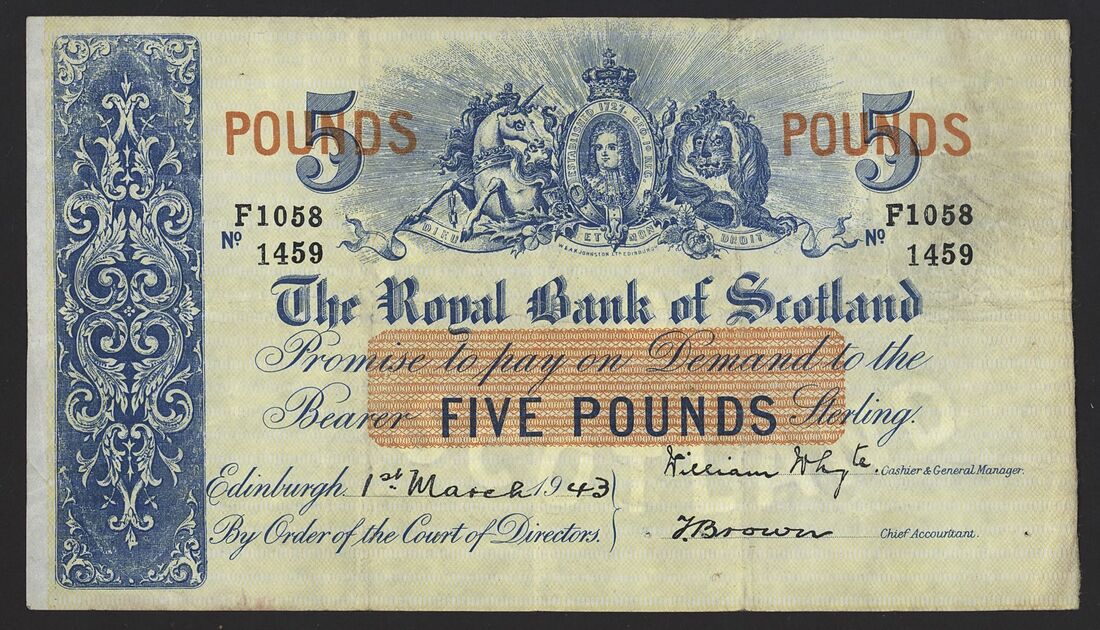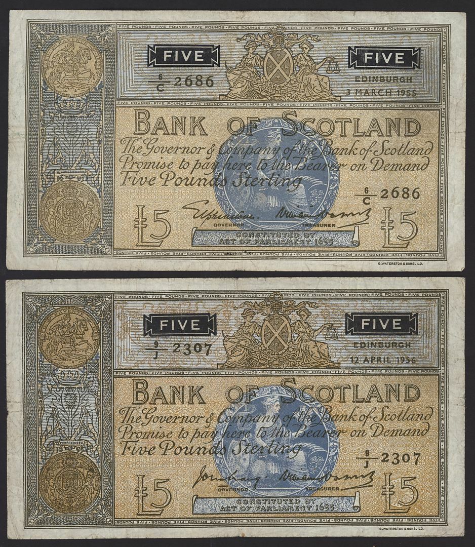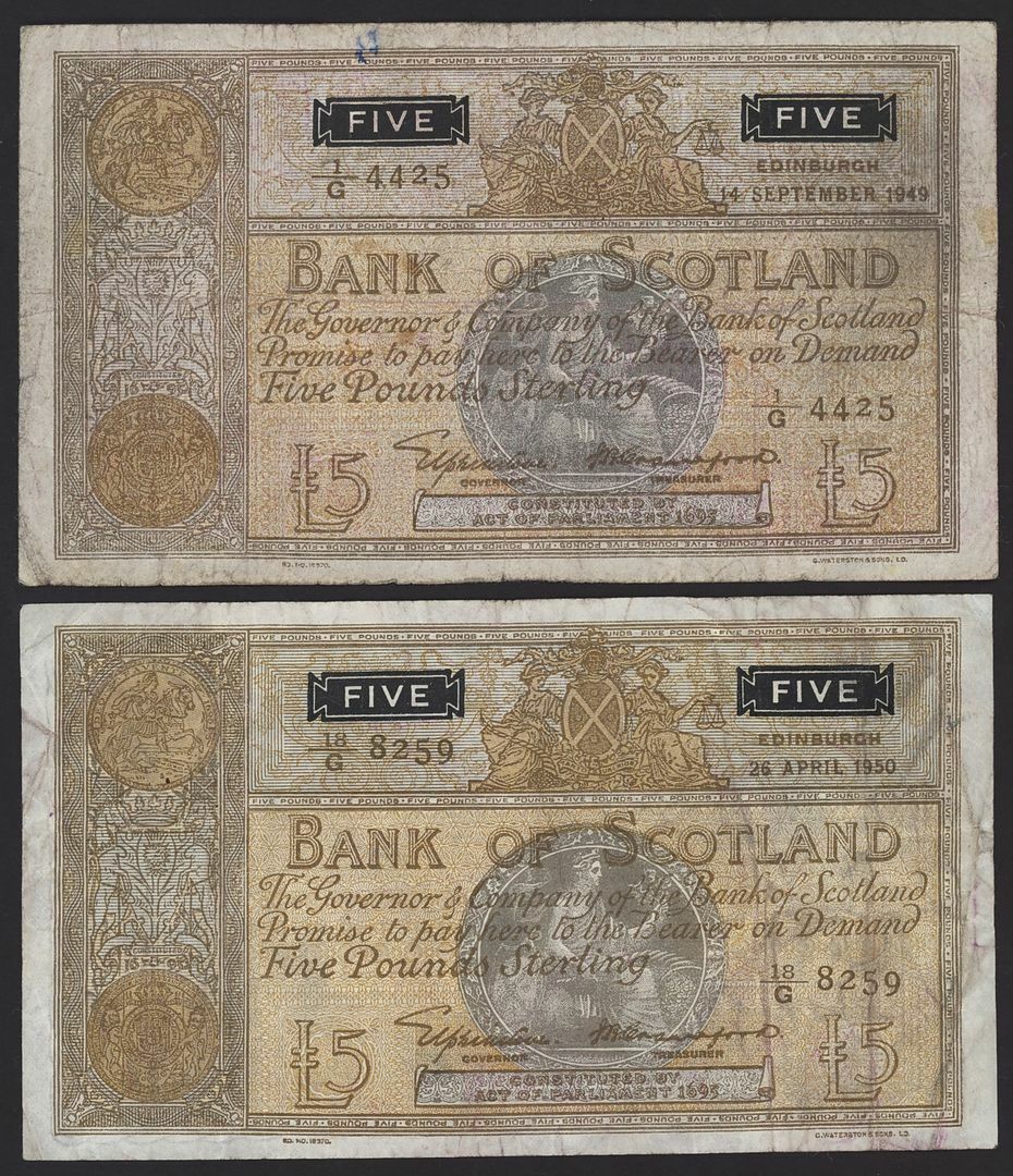 Bank of Scotland, Clydesdale Bank, Royal Bank of Scotland, [18 notes] £5, 1943-1975,