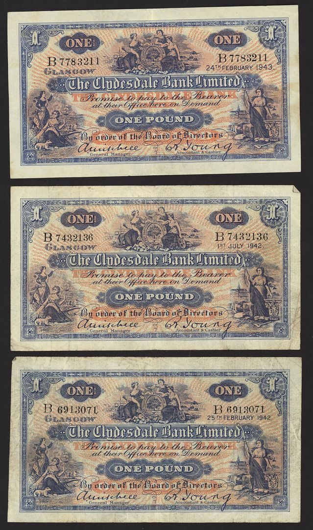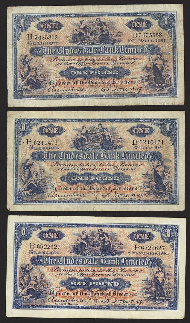Bank of Scotland, British Linen Bank, Clydesdale Bank, [8 notes] £1, 1941-1961,