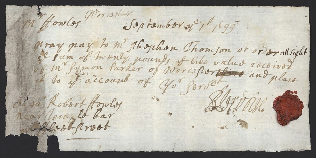 1st September 1699, instructs Mr. Robert Fowles to pay £20 to Mr. Stephen Thomson;