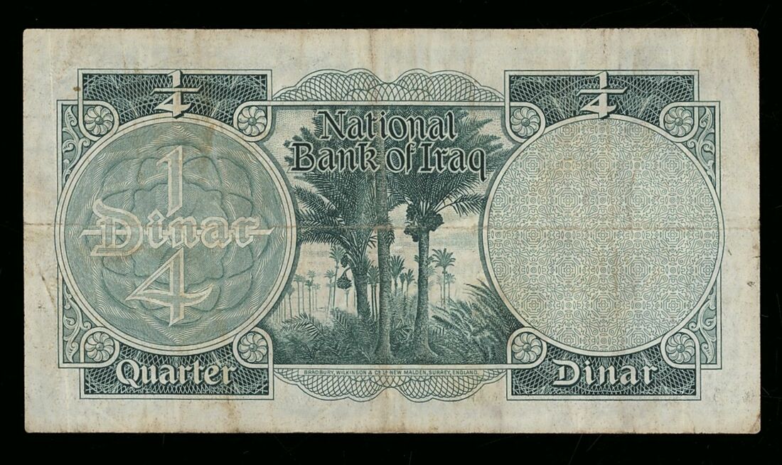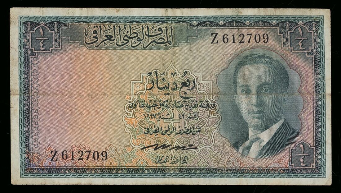 (x) National Bank of Iraq, 1/4 Dinar, 1947, serial number Z612709, (Pick 37, BNB 211),