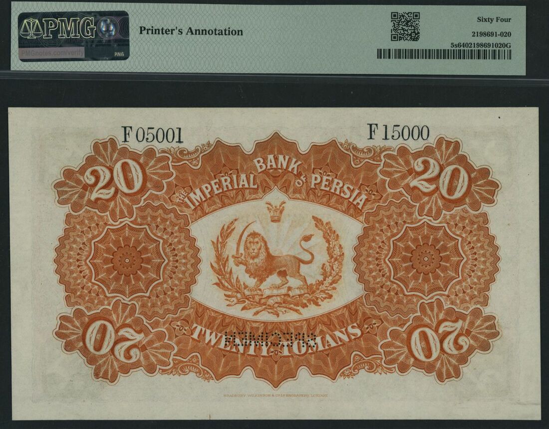 (x) Imperial Bank of Persia, specimen 20 Tomans, 1st January 1896, serial number range F 05001 - F 15000,