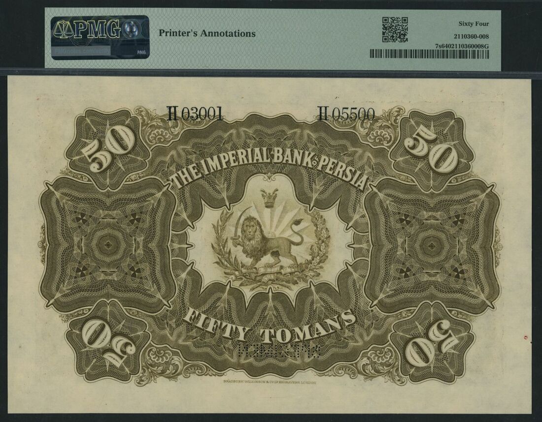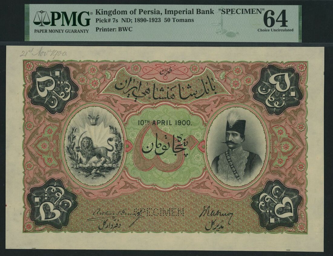 (x) Imperial Bank of Persia, specimen 50 Tomans, 10th April 1900, serial number range H 03001 - H 05500,