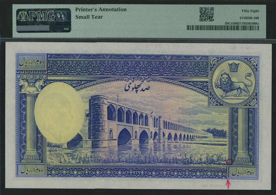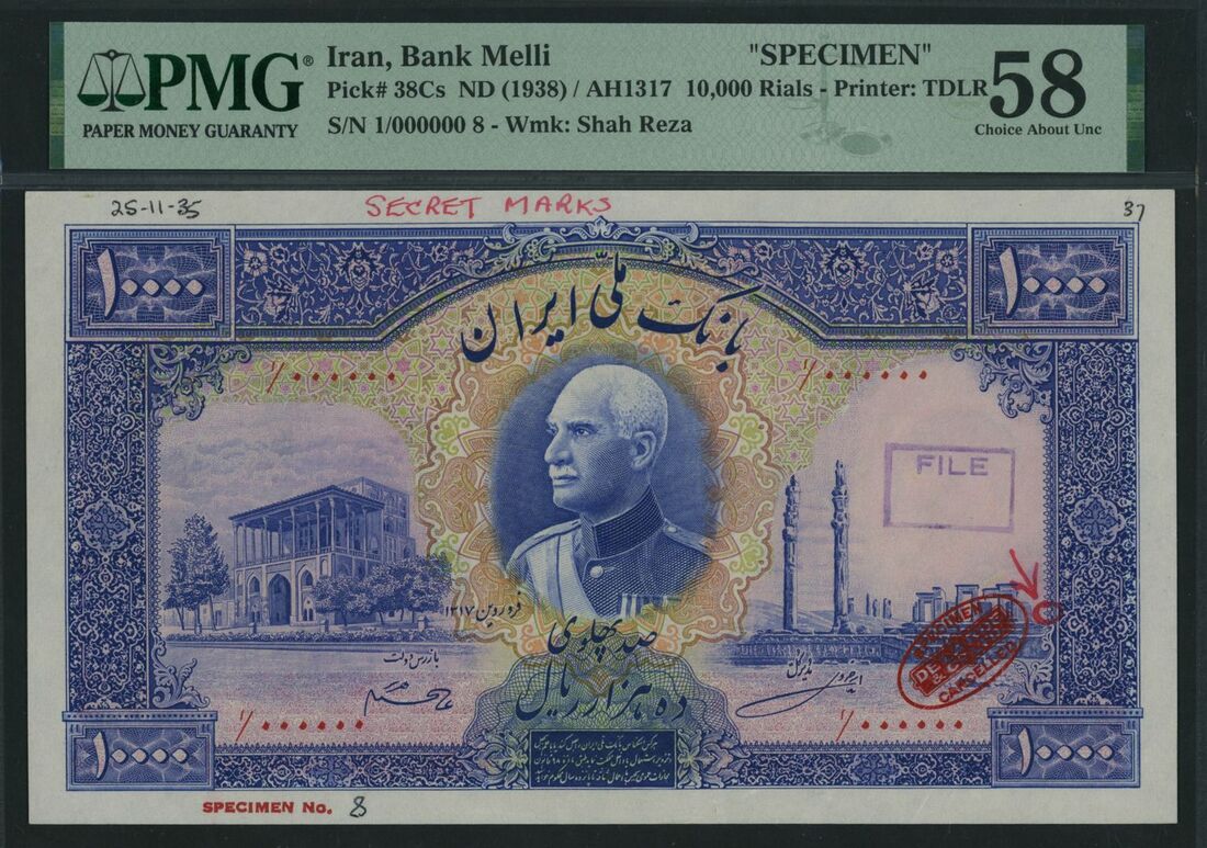 (x) Bank Melli, Iran, specimen 10,000 Rials, ND (1938) / AH1317, serial number 1/000000 8,