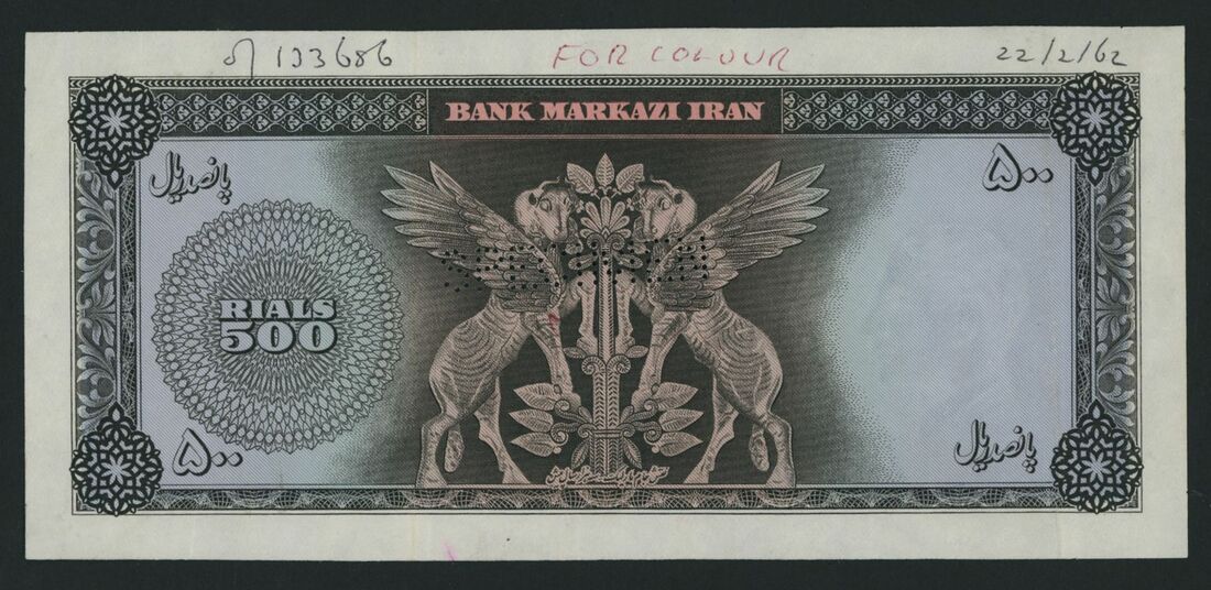 (x) Bank Markazi, Iran, specimen progressive proof, 22nd February 1962, (Pick 74pp, BNB 206), about uncirculated, perforated 'specimen'