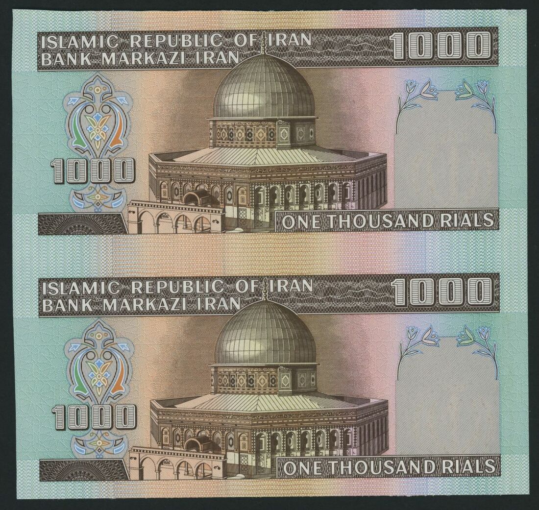 (x) Bank Markazi, Iran, cut sheet of 2 progressive proofs, ND (circa. 1982), (Pick 138pp, BNB 217pp), about uncirculated (sheet of 2)