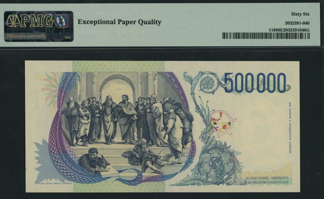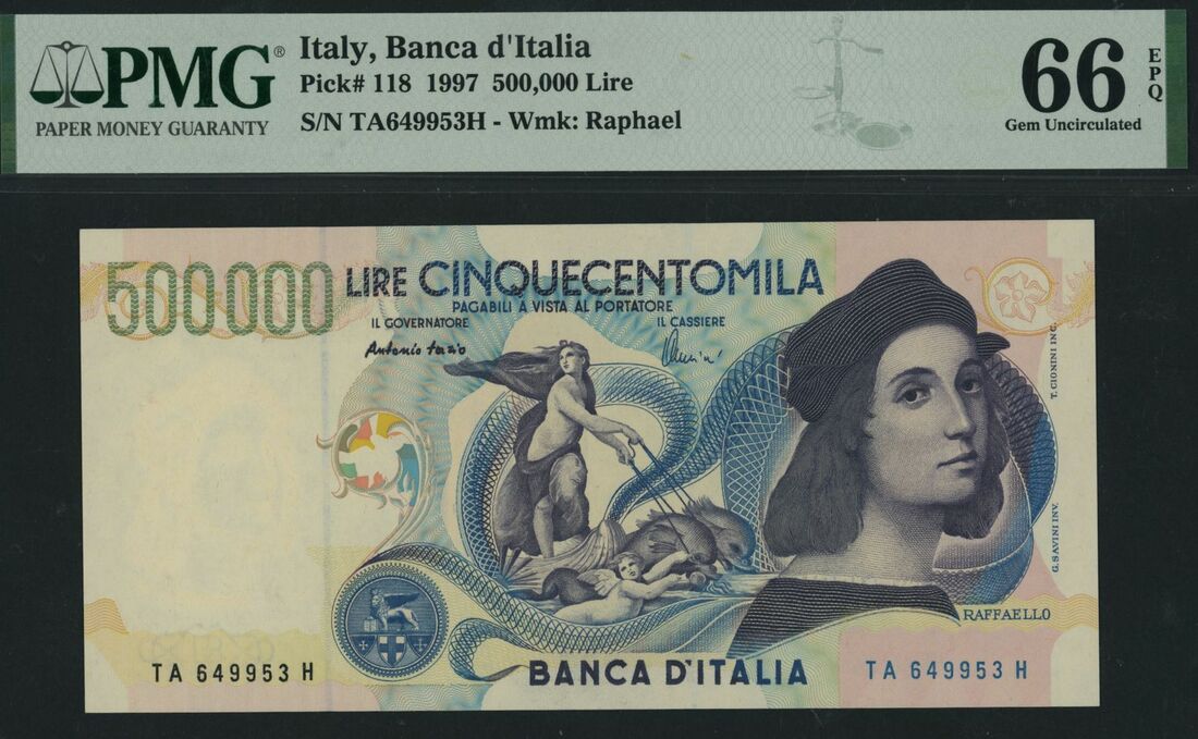 (x) Banca d'Italia, Italy, 500,000 Lire, 6th May 1997, serial number TA649953H, (Pick 118), in PMG holder 66 EPQ Gem Uncirculated