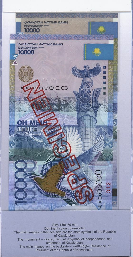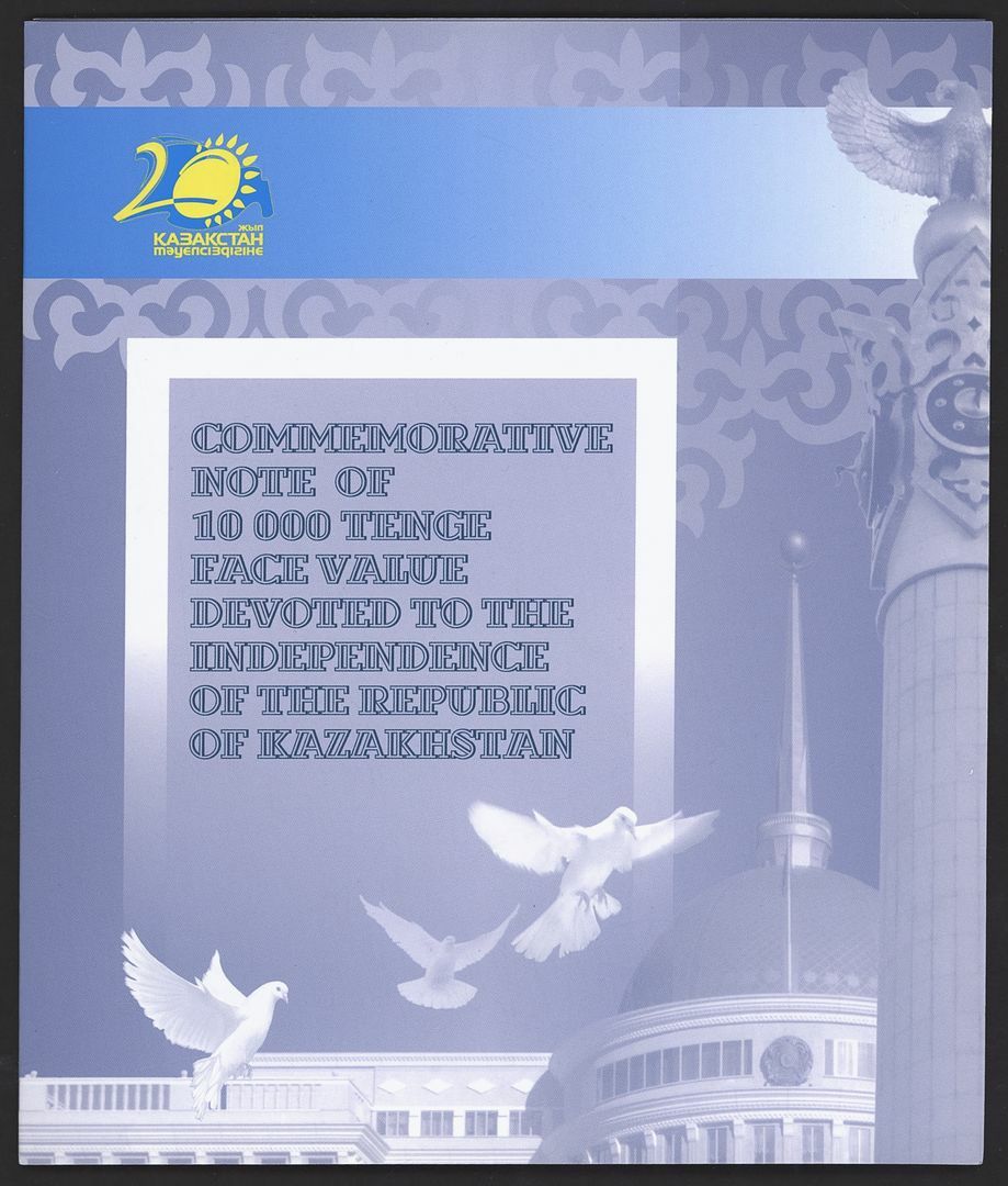Commemorative 10000 Tenge note devoted to the independence of the Republic of Kazakhstan, in informational brochure