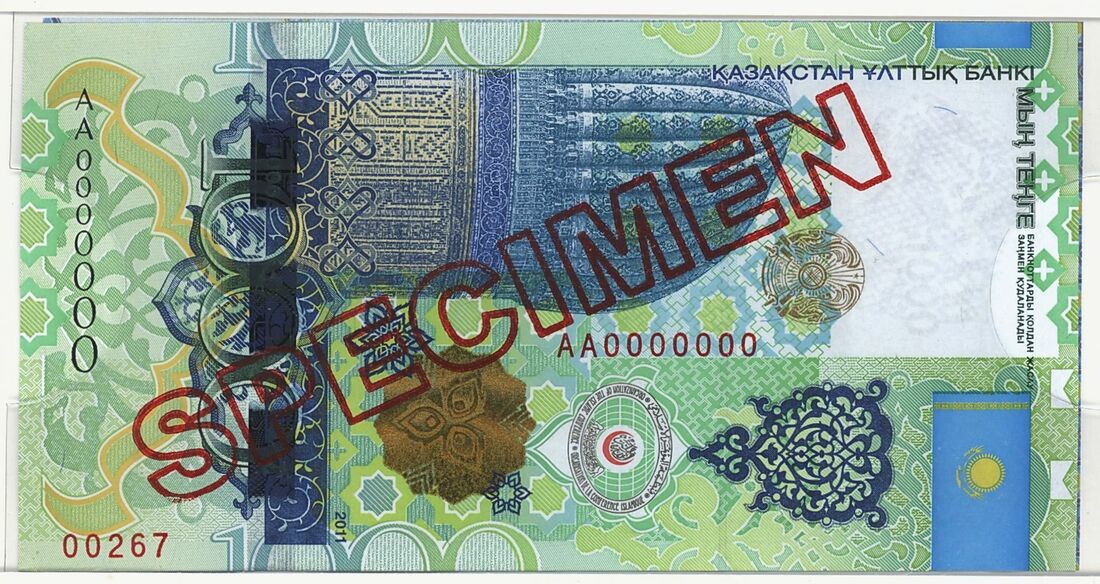 Commemorative 1000 Tenge note devoted to the Presidency of Kazakhstan in the organisation of the Islamic Conference, in informational brochure;