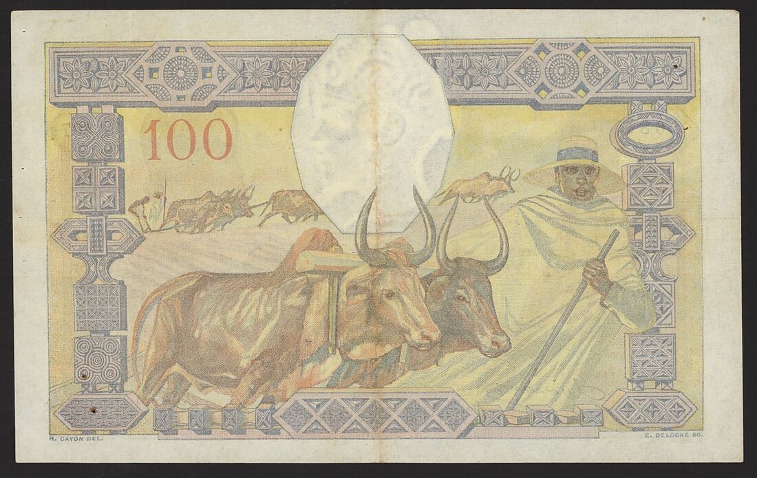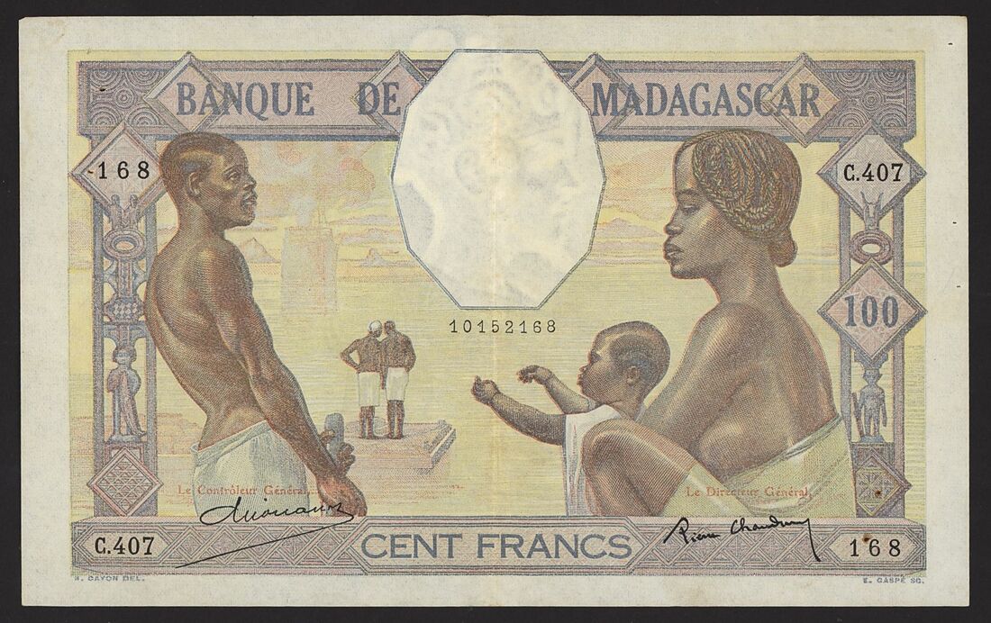 (x) Banque de Madagascar, 100 Francs, 1937, serial number C.407 168, (Pick 40, TBB B206b), extremely fine, pinholes
