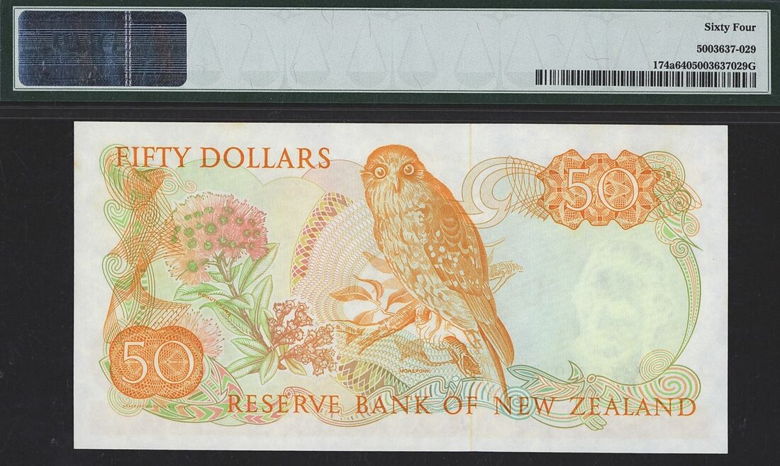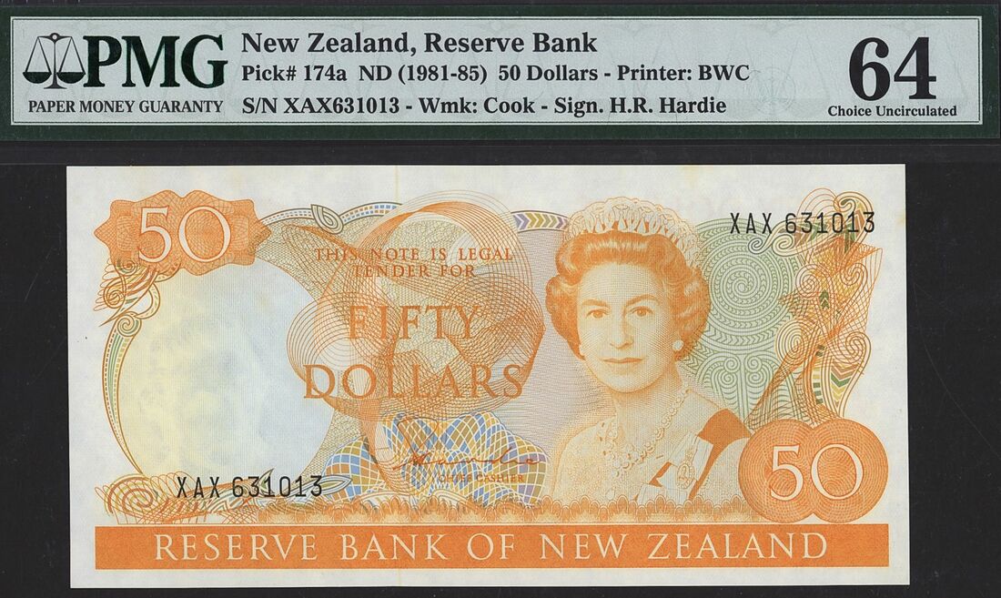 (x) Reserve Bank of New Zealand, 50 Dollars, ND (1981085), serial number XAX631013, (Pick 174a), in PMG holder 64 Choice Uncirculated